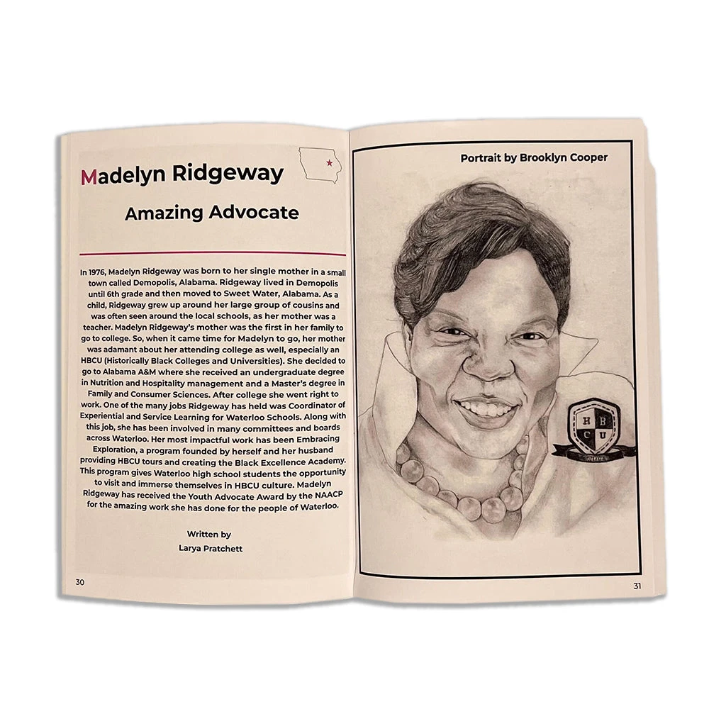 Amazing Waterloo Women. An homage to the Waterloo Women who paved the way. Written and illustrated by students at East High School. “This book is dedicated to Elizabeth Dee McDonald for her love and unwavering support of East High. Dee raised two intelligent, strong sons, Develle and DeJuan, whom she lovingly called Boys to Men. May we keep Dee’s spirit alive and honor her legacy by being vocal advocates and community supporters.”