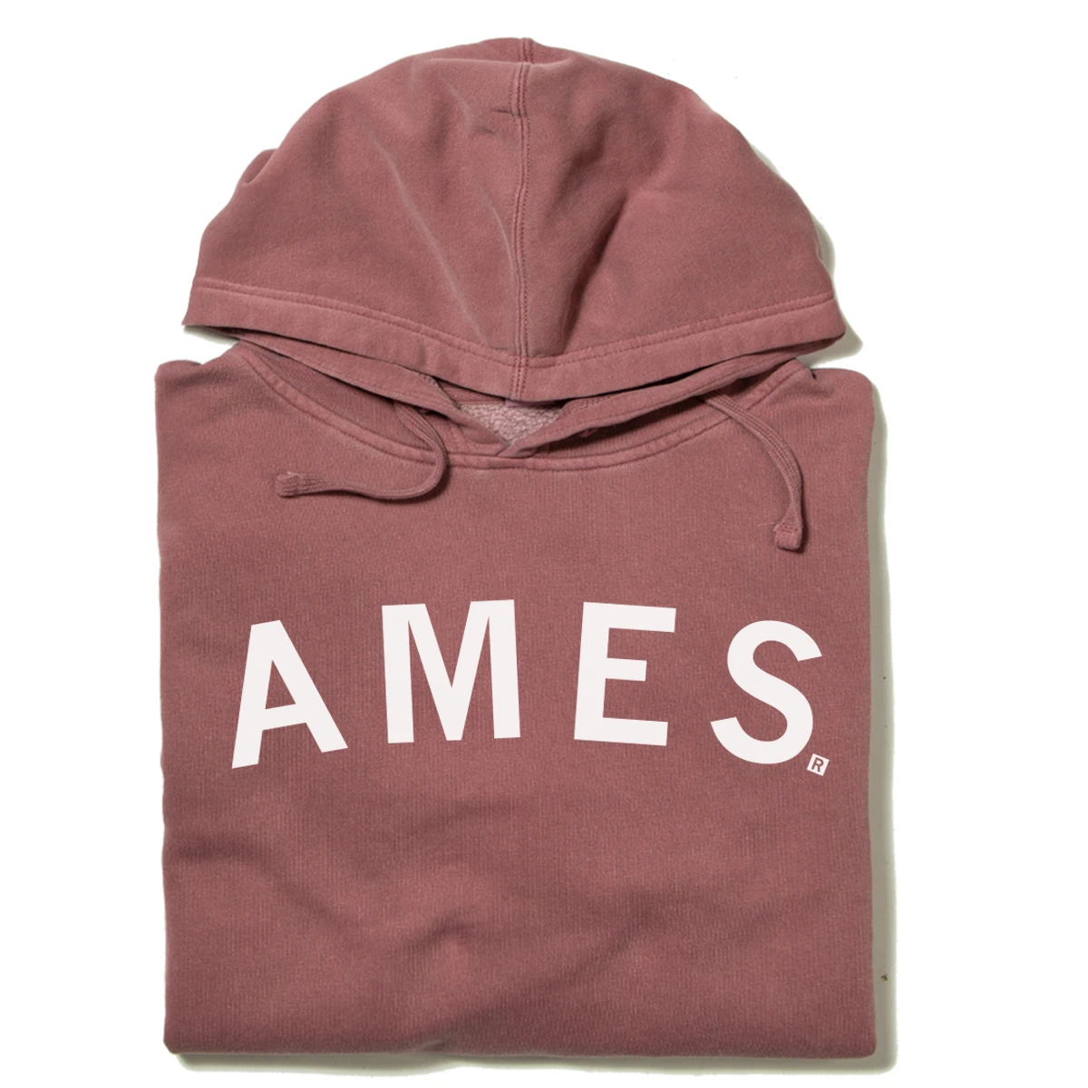 Ames, Iowa. A Portion of All RAYGUN Sales Raise Money For Organizations That We Support. White Screen Print on a Pigment Maroon Pullover Hoodie (80% Combed Ringspun Cotton / 20% Polyester). Cut and sewn sweatshop free. Designed and printed by Union Labor at RAYGUN.