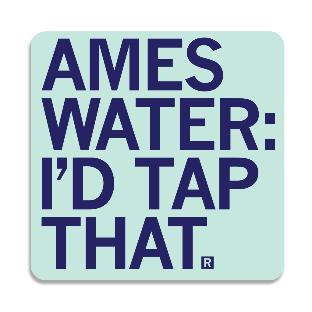 Ames Water: I’d Tap That. A Portion of All RAYGUN Sales Raise Money For Organizations That We Support. Vinyl sticker. Designed by RAYGUN and printed by Sinclair Graphics in Des Moines, IA.