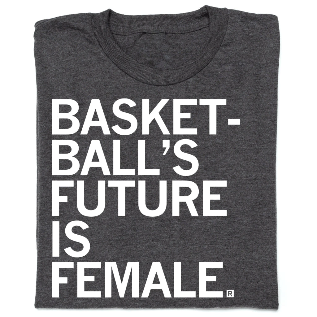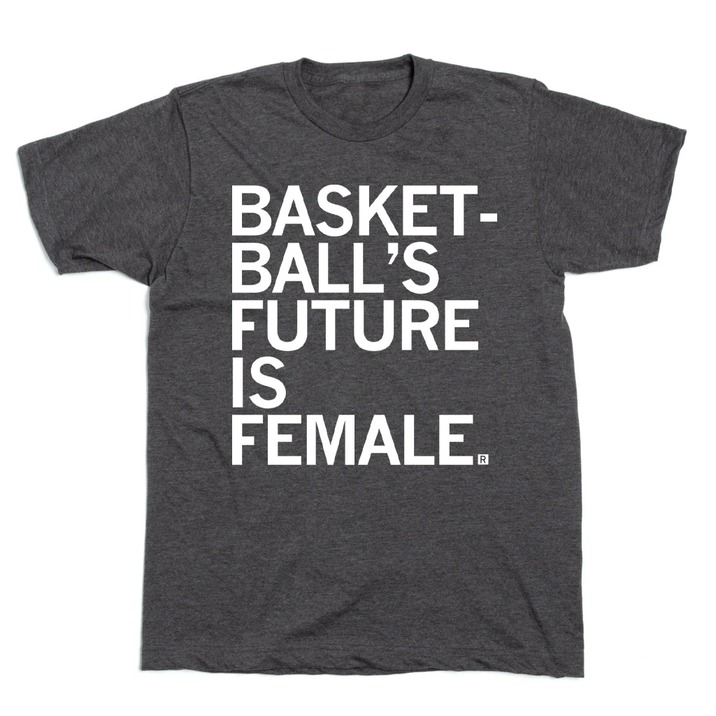 Basketball’s Future Is Female. A Portion of All RAYGUN Sales Raise Money For Organizations That We Support. White Screen Print on a Charcoal T-shirt (50% Combed Ringspun Cotton / 50% Polyester). Cut & sewn sweatshop free. Designed and Printed by Union Labor at RAYGUN.