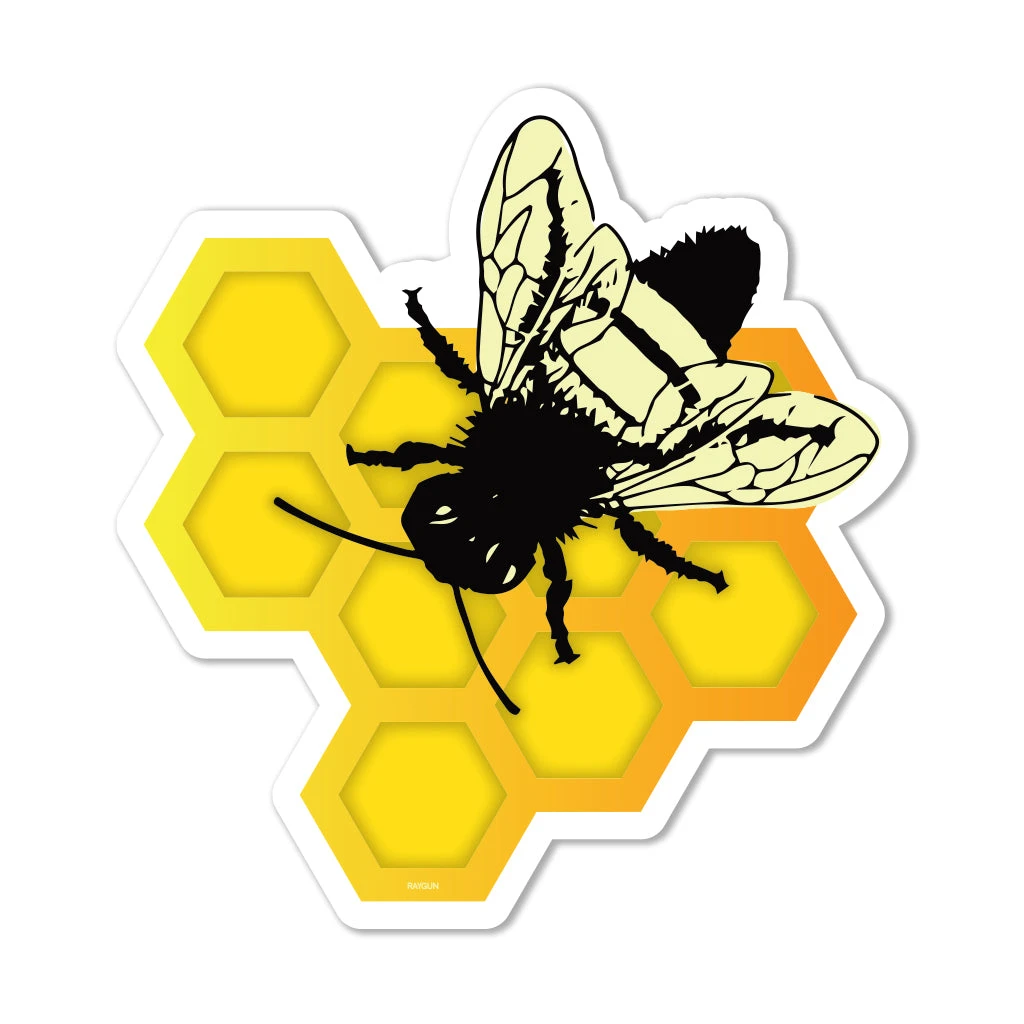 Bee The Change. Die-Cut Vinyl sticker. Designed by RAYGUN and printed by Sinclair Graphics in Des Moines, IA.