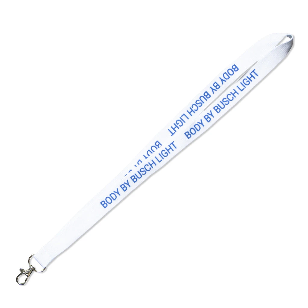 Body By Busch Light. A Portion of All RAYGUN Sales Raise Money For Organizations That We Support. 15 inch lanyard with 1 inch snap clip (100% Polyester). Designed by Union Labor at RAYGUN.