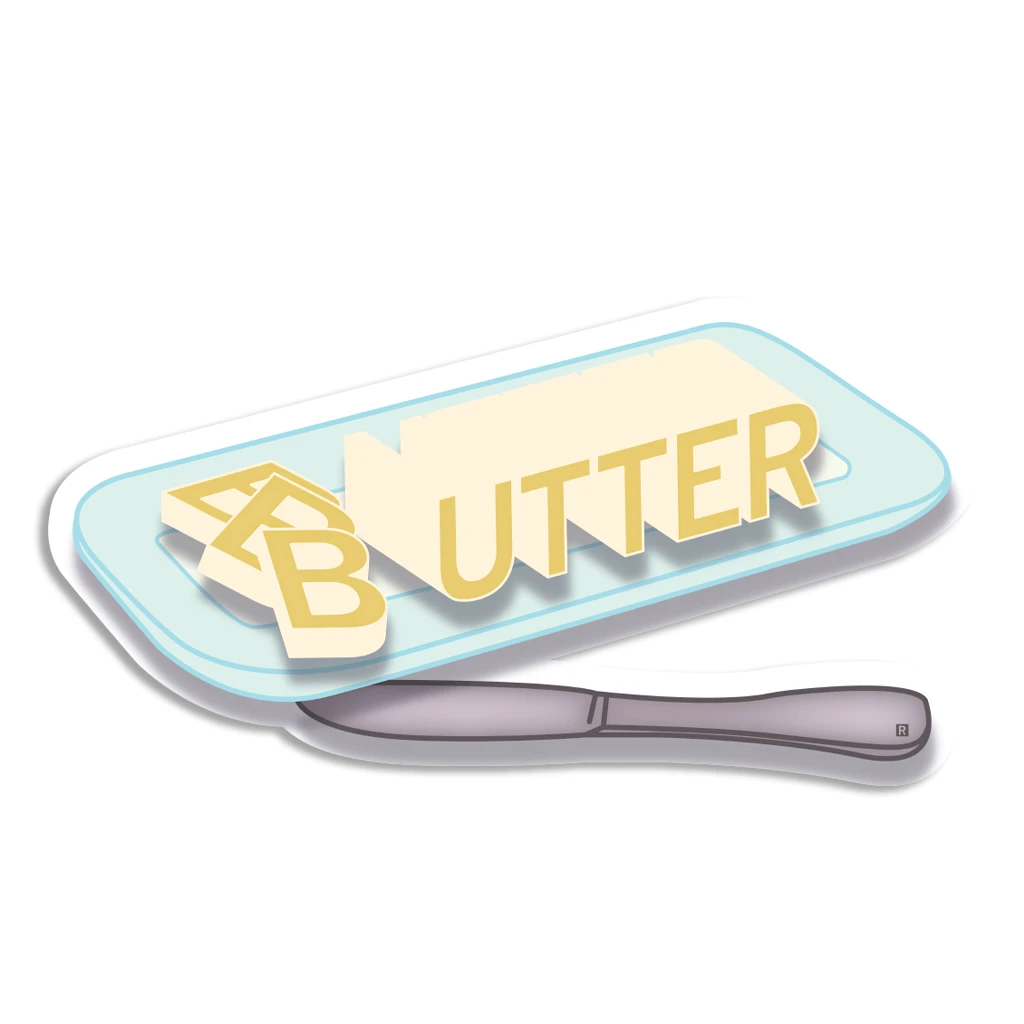Butter. Die-Cut Vinyl sticker. Designed by RAYGUN and printed by Sinclair Graphics in Des Moines, IA.