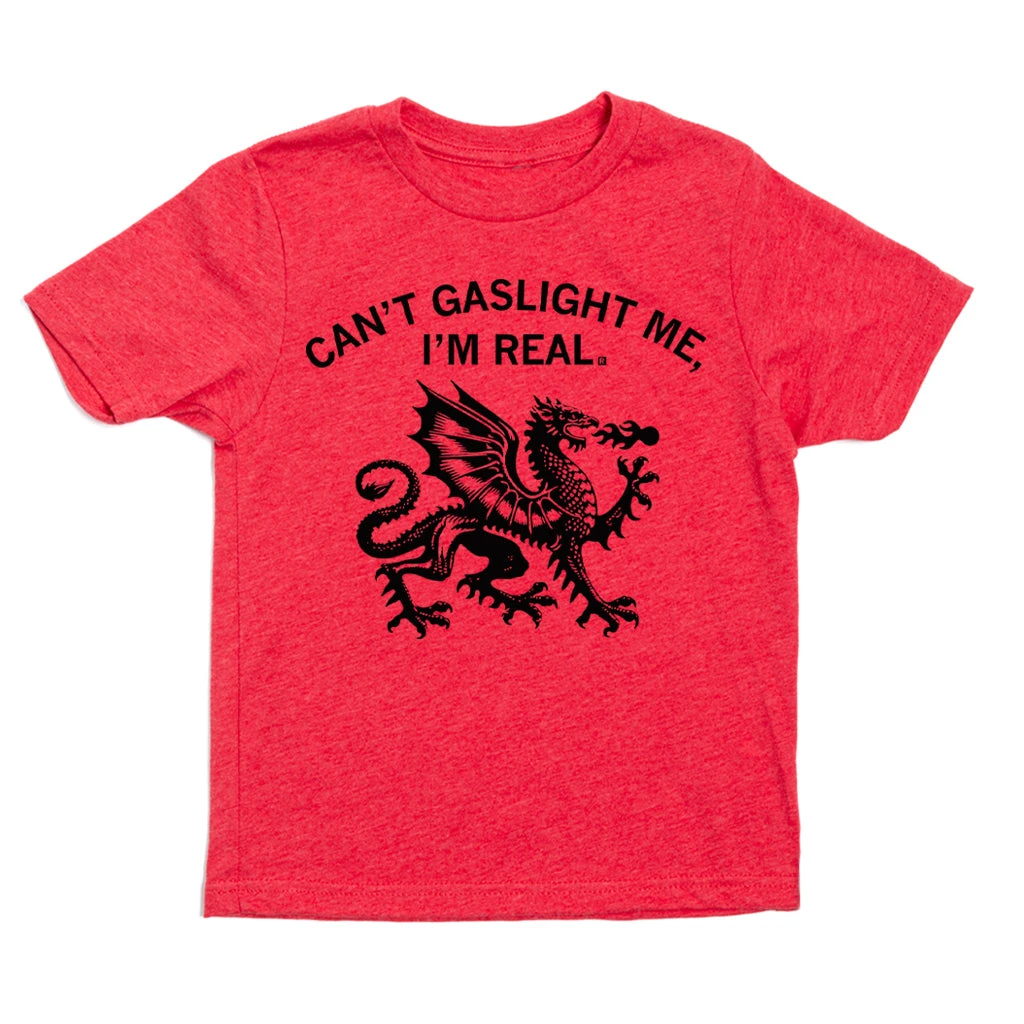 Can’t gaslight me, I’m Real. NewBo STEAM Saturdays Design Winner! A Portion of All RAYGUN Sales Raise Money For Organizations That We Support. Black Screen Print on a Heather Red T-shirt (60% Combed Ringspun Cotton / 40% Polyester ). Cut and sewn sweatshop free. Designed & printed by Union Labor at RAYGUN.