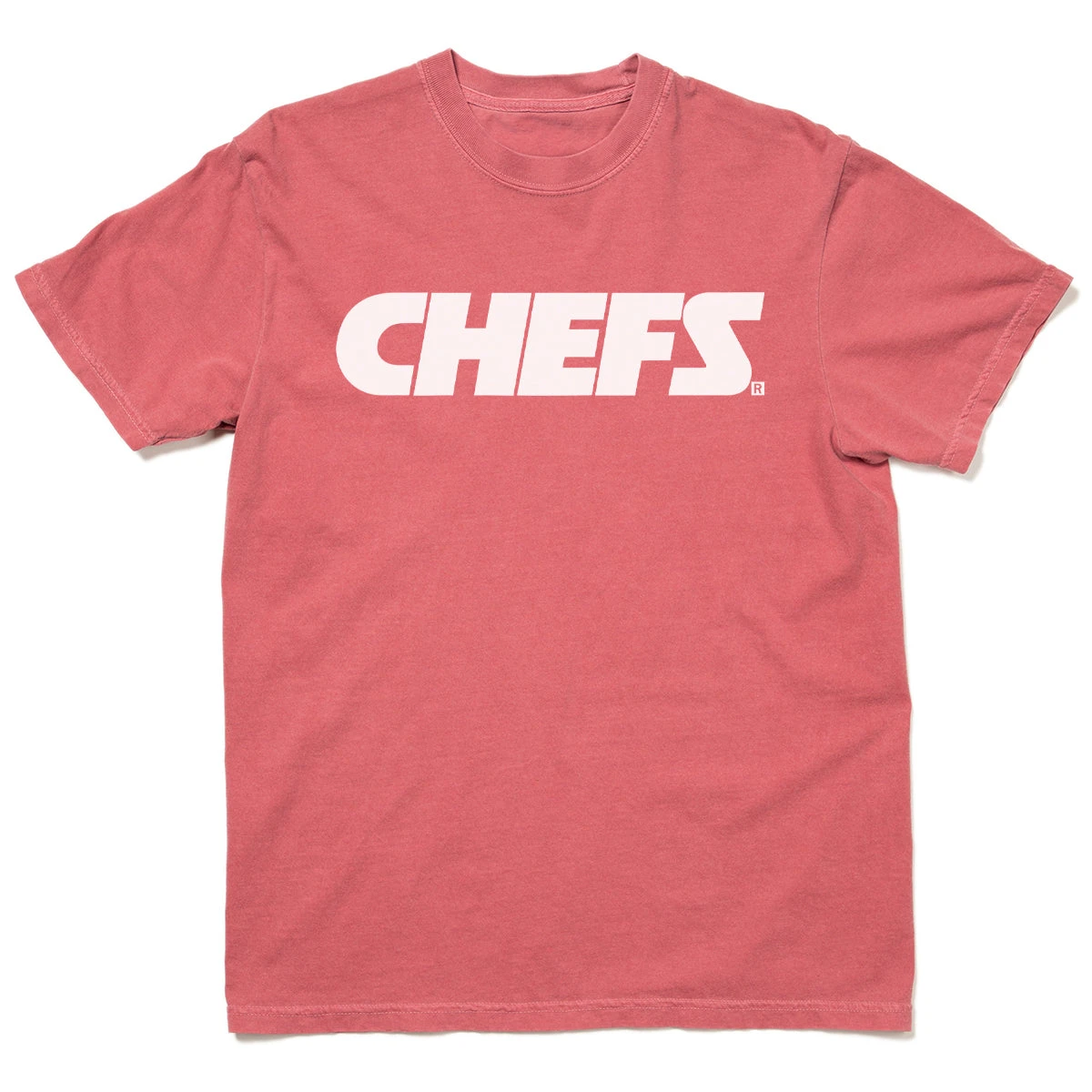 Chefs! A Portion of All RAYGUN Sales Raise Money For Organizations That We Support. White Screen Print on a Garment-Dyed Heavyweight Crimson T-shirt (100% Combed Ringspun Cotton Heavyweight). Cut & sewn sweatshop free. Designed and Printed by Union Labor at RAYGUN.