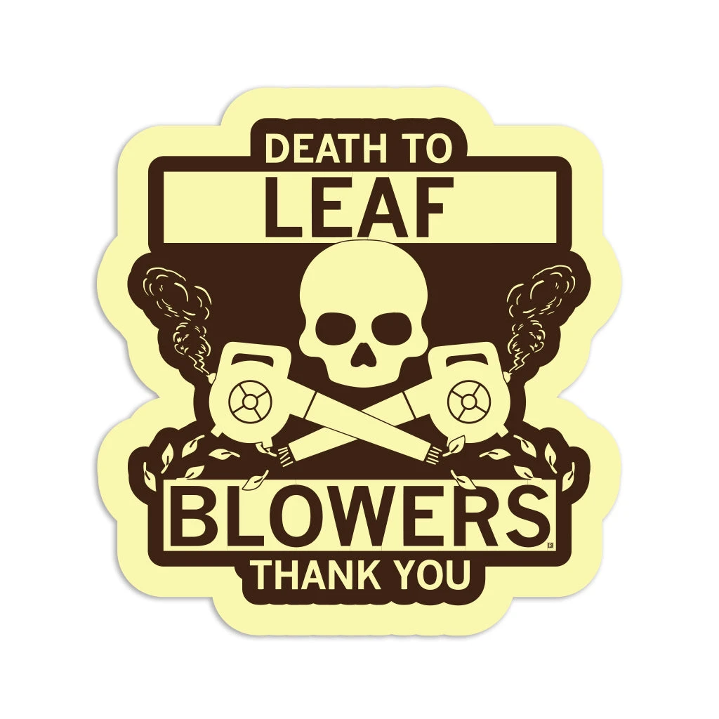 Death to Leaf Blowers; the most polluting yard tool ever invented. A Portion of All RAYGUN Sales Raise Money For Organizations That We Support. Die-Cut Vinyl sticker. Designed by RAYGUN and printed by Sinclair Graphics in Des Moines, IA.