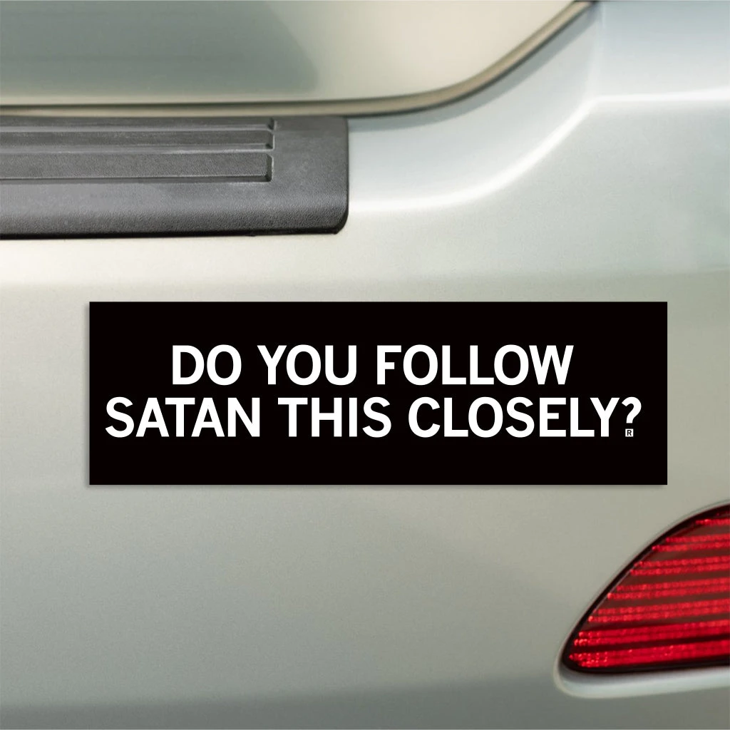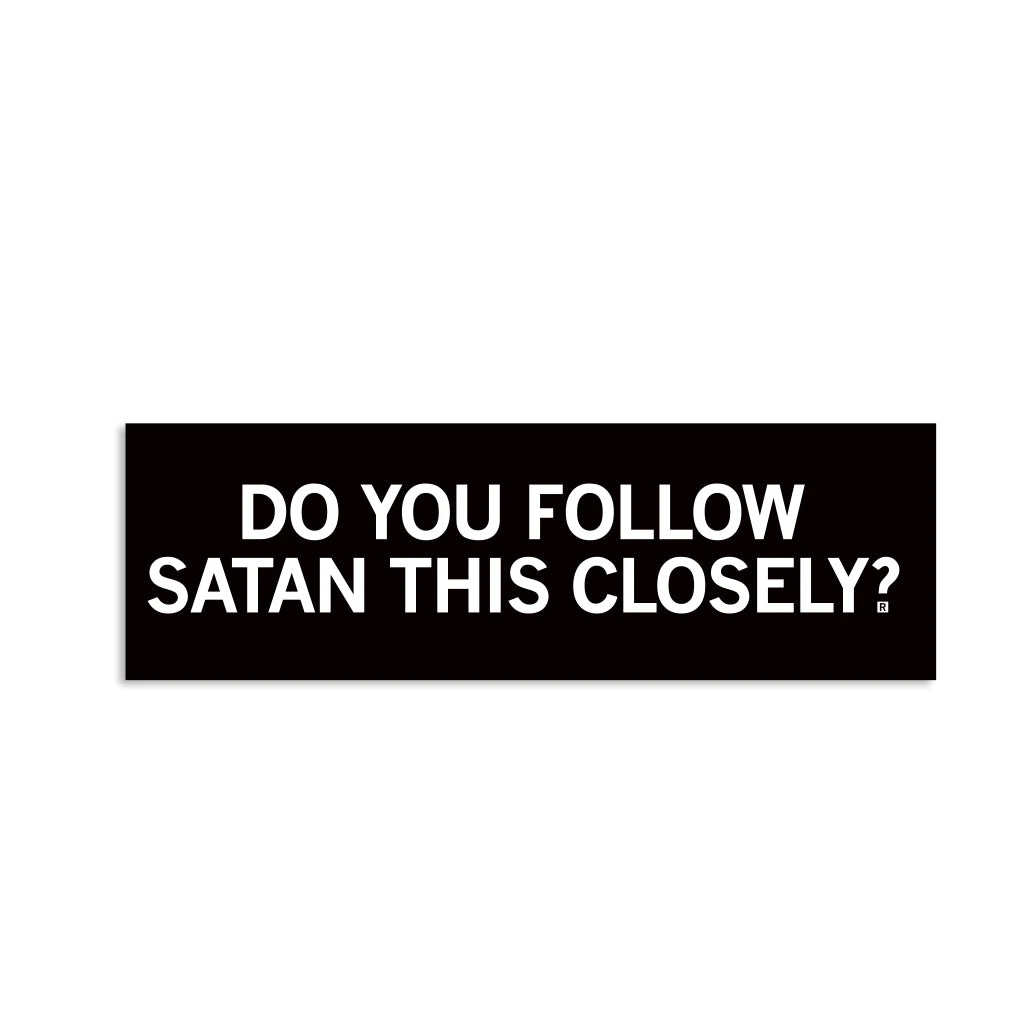Do you follow Satan this closely? A Portion of All RAYGUN Sales Raise Money For Organizations That We Support. 10″ x 3″ Vinyl Bumper Sticker. Designed by RAYGUN and printed by Sinclair Graphics in Des Moines, IA.