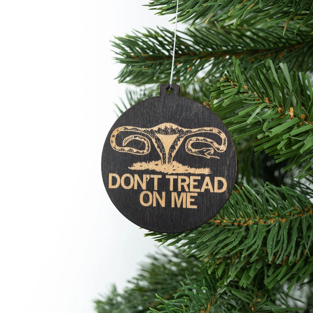 Uterus: “Don’t Tread On Me!” A Portion of All RAYGUN Sales Raise Money For Organizations That We Support. Laser Etch on Baltic Birch wood ornament. 3″ x 2″ x .125″ thick. Elastic hanger or metal hook included. Designed and manufactured by union labor at RAYGUN.