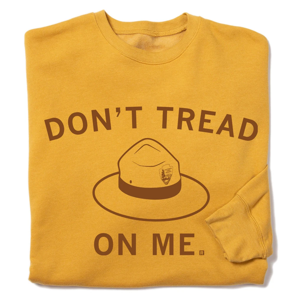National Parks: Don’t Tread On Me. Inspired by Brian Gibbs himself. A Portion of All RAYGUN Sales Raise Money For Organizations That We Support. Sienna Brown Screen Print on a Heather Mustard Crew Sweatshirt (52% Combed Ringspun Cotton / 48% Polyester). Cut and sewn sweatshop free. Designed and printed by Union Labor at RAYGUN.
