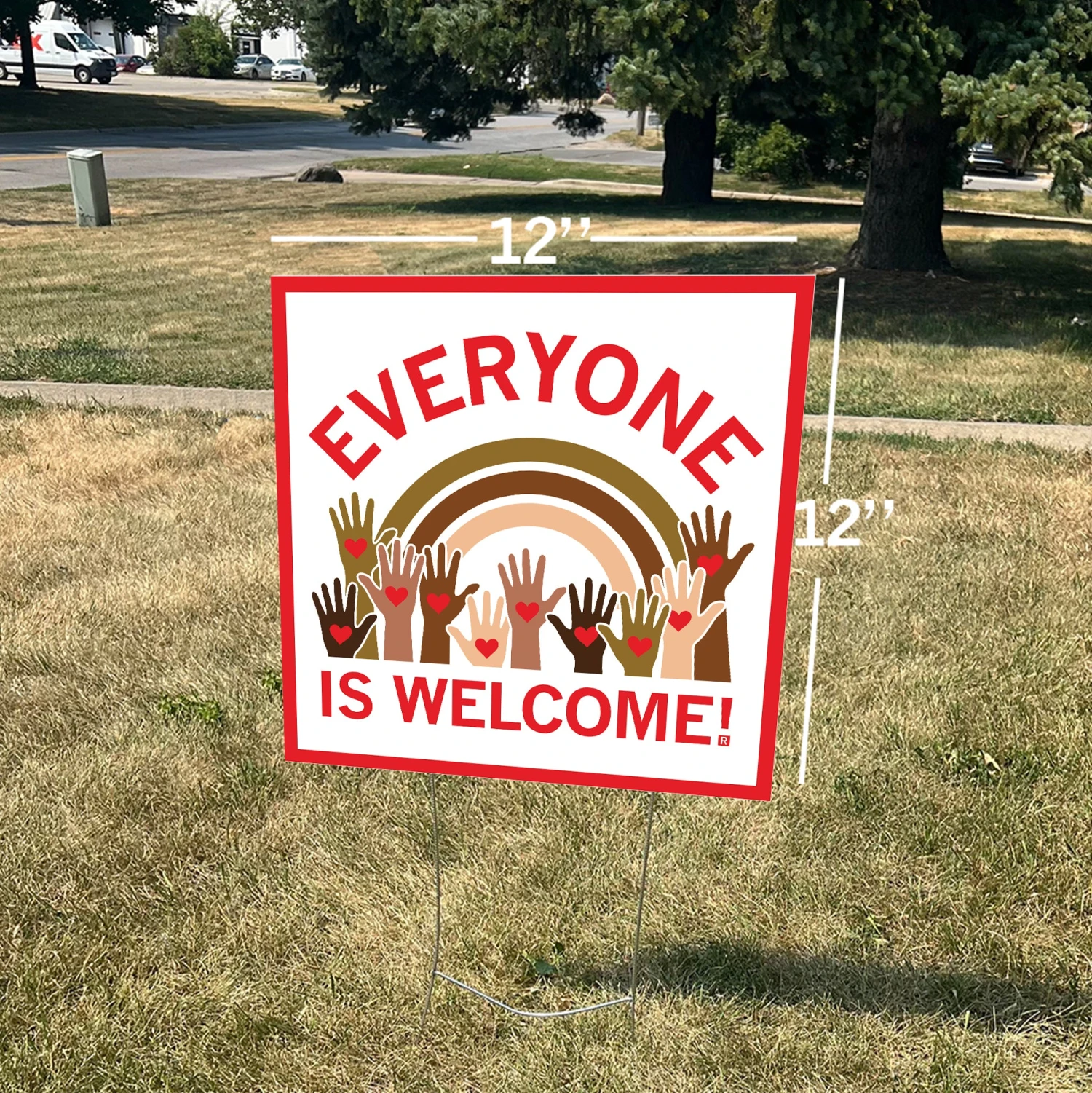 Everyone is welcome! A Portion of All RAYGUN Sales Raise Money For Organizations That We Support. 12″ x 12″ Chloroplast Yard Sign with 10″ x 14″ Metal Stake. Designed by RAYGUN and made in Des Moines, IA.