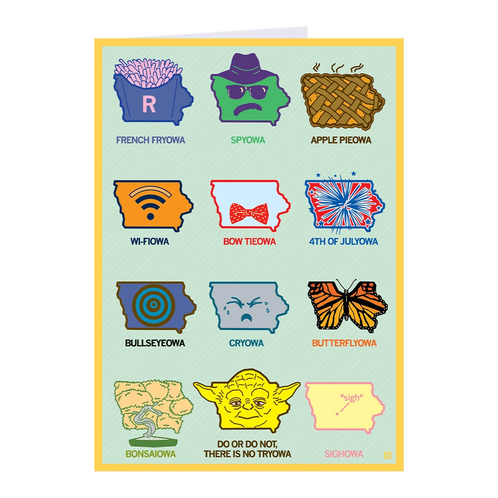 Some of the many faces of Iowa. 5″ x 7″ Folded Greeting Card. Inside of the card is blank. Envelope included. Designed by RAYGUN and printed by Garner Printing in Des Moines, IA.