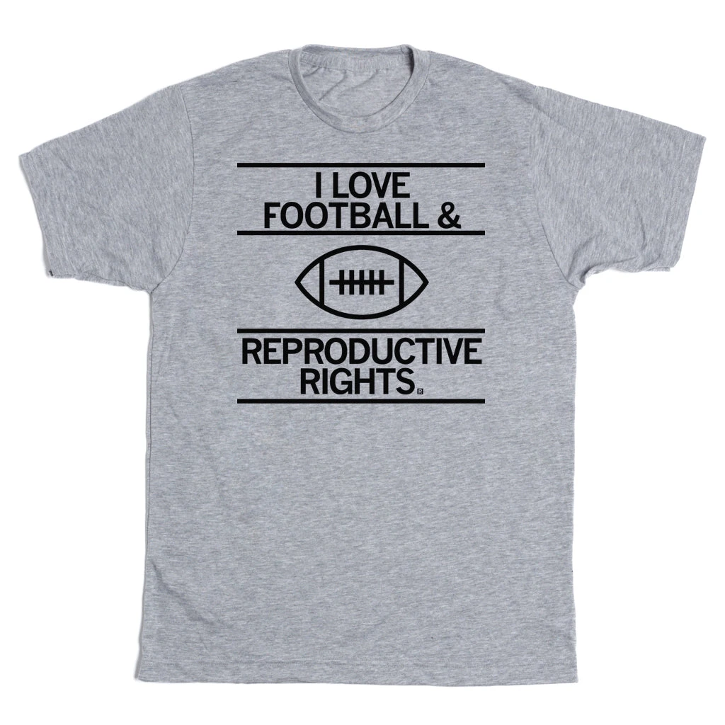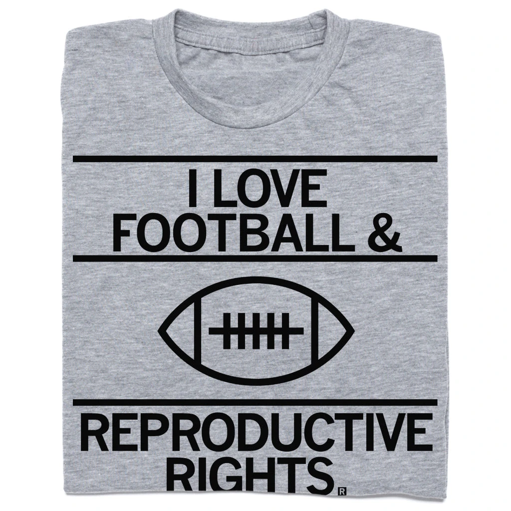 I love football and reproductive rights. Some proceeds from sales go to Planned Parenthood North Central States. Black Screen Print on an Heather Grey T-shirt (65% Polyester / 35% Combed Ringspun Cotton). Cut and sewn sweatshop free. Designed and printed by Union Labor at RAYGUN.