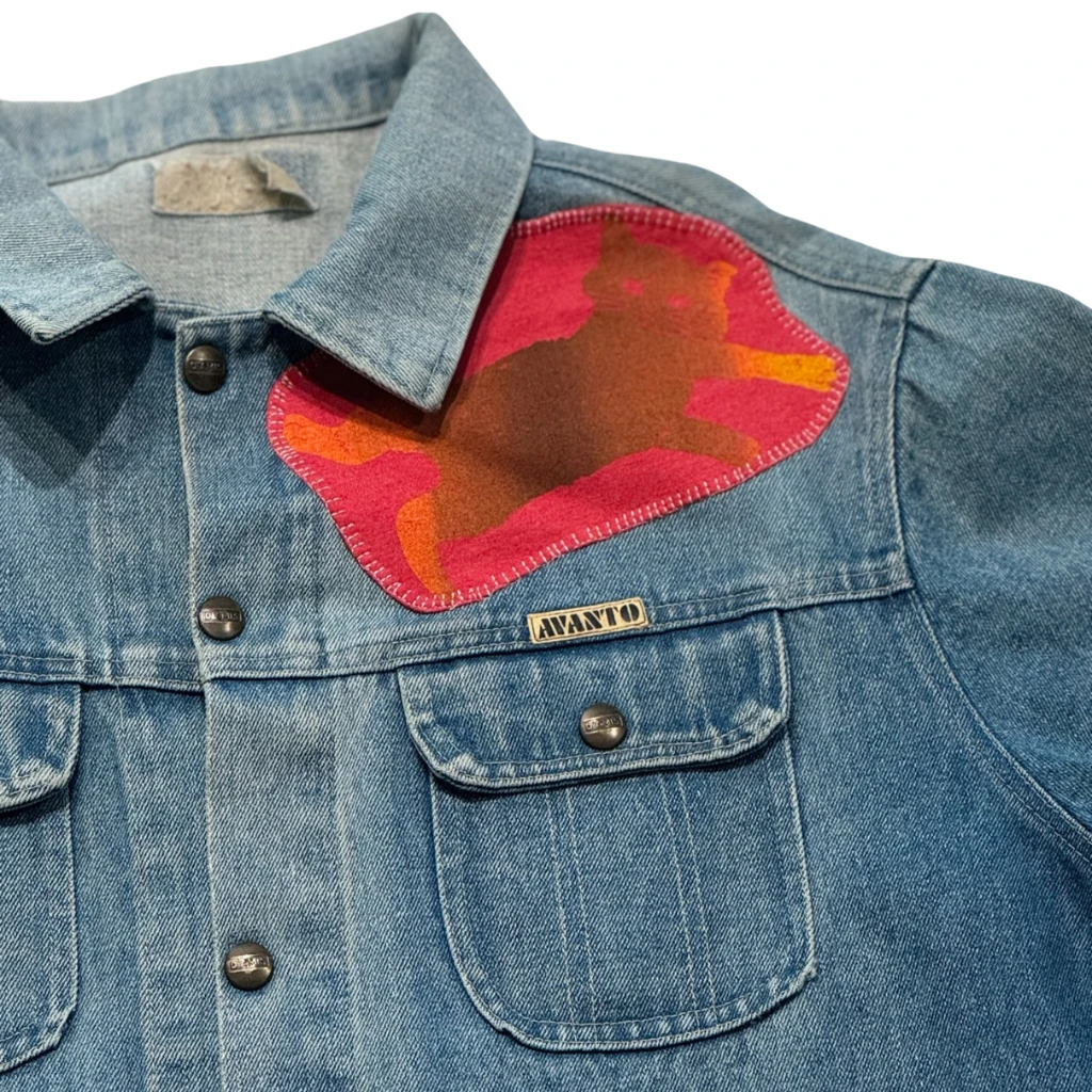 RAYGUN Vintage X H.Art Studios: Style 5. A Portion of All RAYGUN Sales Raise Money For Organizations That We Support. Ethically Sourced Dark Wash Denim Jacket. (100% Cotton). One of One Design