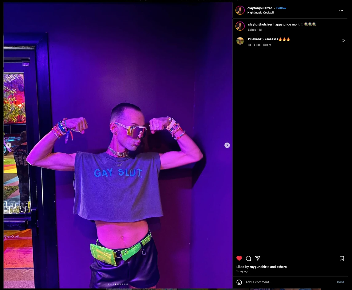 Gay Slut. A Portion of All RAYGUN Sales Raise Money For Organizations That We Support. Brite Blue Screen Print on a Garment-Dyed Heavyweight Faded Black Muscle Crop Top T-shirt (100% Combed Ringspun Cotton Heavyweight). Cut & sewn sweatshop free. Designed and Printed by Union Labor at RAYGUN.