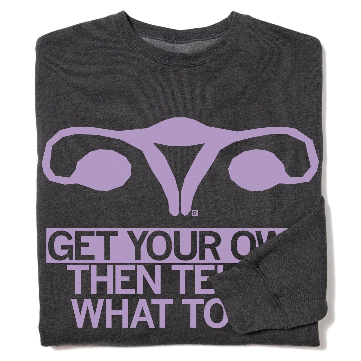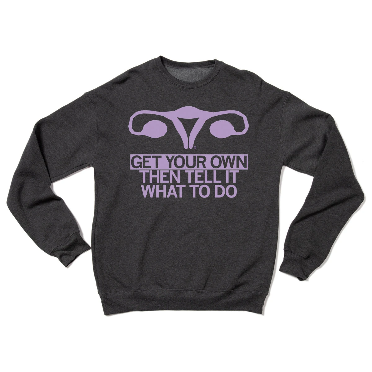 Get Your Own, Then Tell It What To Do. Some proceeds go to Planned Parenthood North Central States. Lavender screen print on Charcoal Heather crew sweatshirt (55% Combed and Ringspun Cotton / 45% Polyester). Cut and sewn sweatshop free. Designed and printed by Union Labor at RAYGUN.