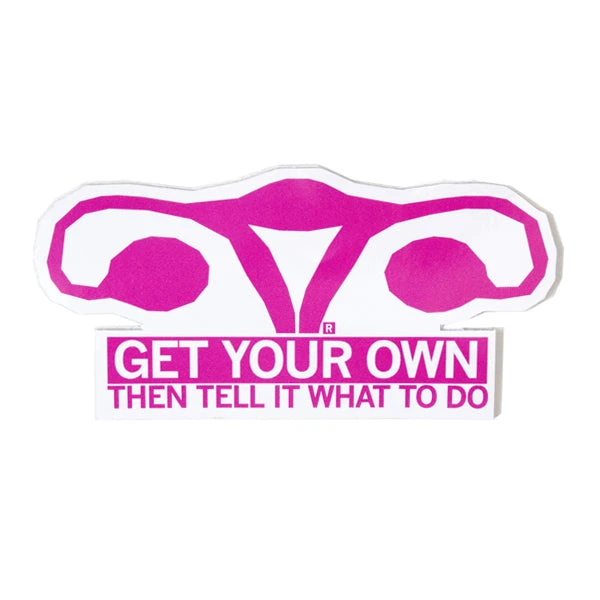Get Your Own Uterus, Then Tell It What To Do. 6″ x 3″ Vinyl sticker. Designed by RAYGUN and printed by Sinclair Graphics in Des Moines, IA.