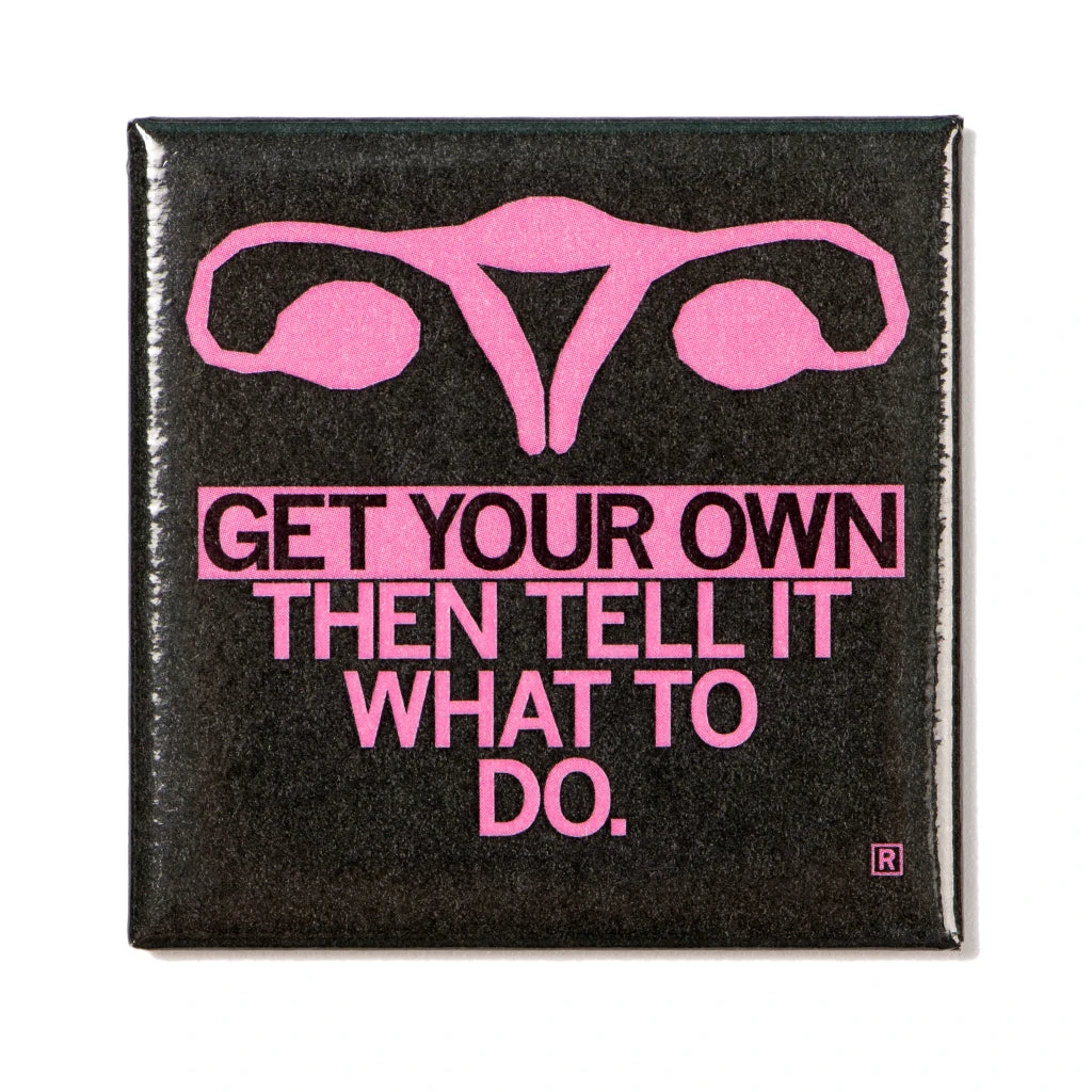 Get Your Own Uterus, Then Tell It What To Do. 2″ x 2″ Metal Magnet. Designed by RAYGUN and made by union labor at Garner Printing in Des Moines, IA.