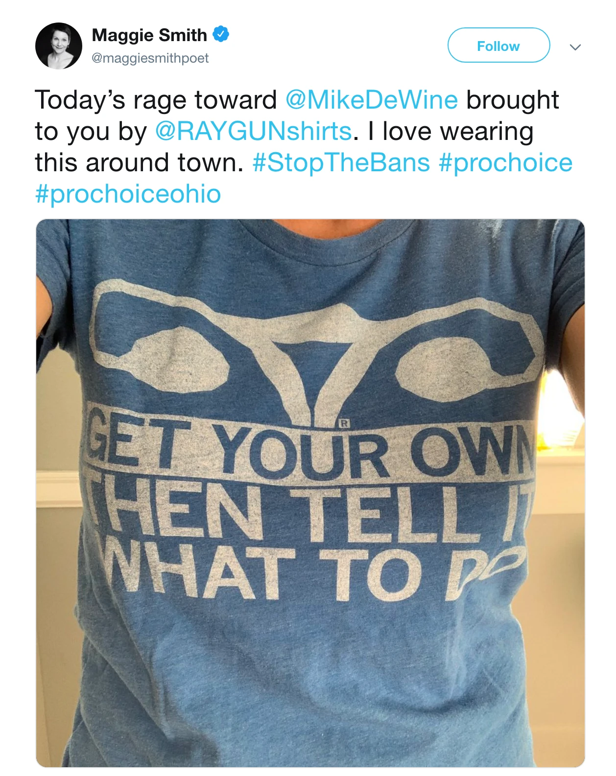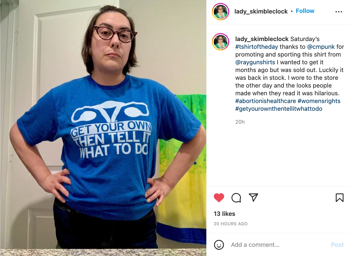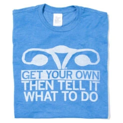 Get Your Own, Then Tell It What To Do! Some proceeds go to Planned Parenthood North Central States. White Screen Print on a Heather Royal T-shirt (50% Cotton / 50% Polyester). Cut and sewn sweatshop free. Designed and printed by Union Labor at RAYGUN