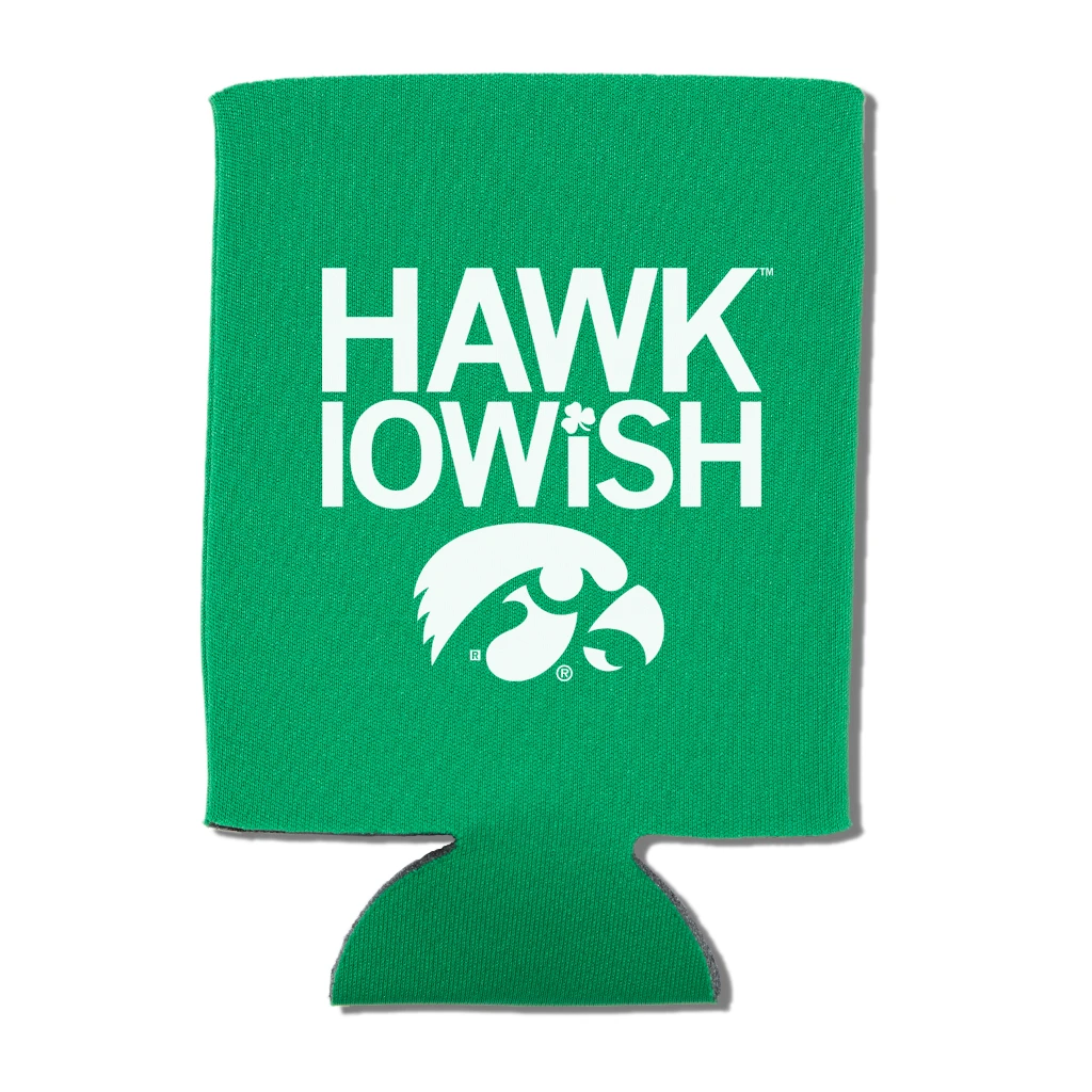 Hawk Iowish. A Portion of All RAYGUN Sales Raise Money For Organizations That We Support. White plastisol ink print on Kelly Green fade-resistant polyester covered scuba foam. Designed by RAYGUN. Imported and printed in the USA.