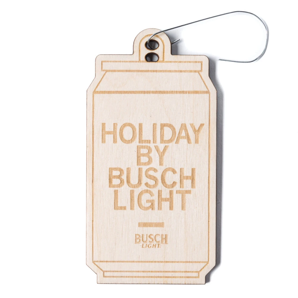 Holiday By Busch Light. A Portion of All RAYGUN Sales Raise Money For Organizations That We Support. Laser Etch on Baltic Birch wood ornament. 2″w x 4″h x .125″ thick. Elastic hanger or metal hook included. Designed and manufactured by union labor at RAYGUN.