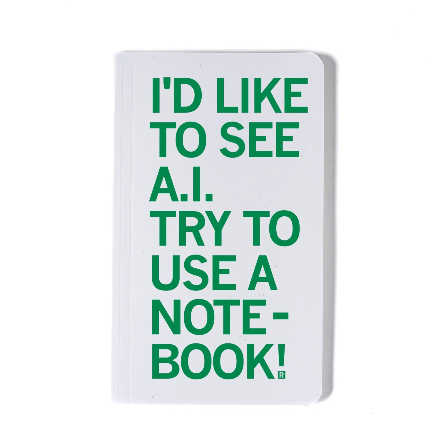 I’d like to see AI try to use a notebook. A Portion of All RAYGUN Sales Raise Money For Organizations That We Support. Emerald Screen Print on unlined paper made in the USA, dimensions 5.5″ x 8.5″. Designed by RAYGUN and printed by Union Labor at RAYGUN. Assembled using union labor at Garner Printing in Des Moines, IA.