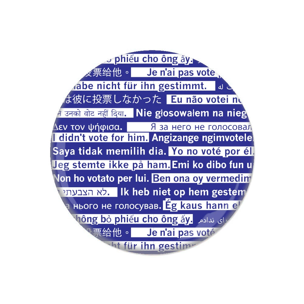 I Didn’t Vote For Him. Almost every translation we could think of! A Portion of All RAYGUN Sales Raise Money For Organizations That We Support. 2.25″ Round Metal Button. Designed by RAYGUN and Made by Badge Bomb LLC.