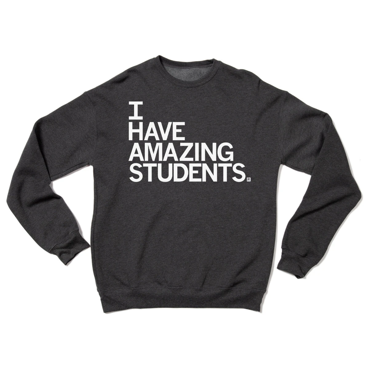 I Have Amazing Students. A Portion of All RAYGUN Sales Raise Money For Organizations That We Support. White Screen Print on a Charcoal Heather Crew Sweatshirt (75% Combed Ringspun Cotton / 25% Polyester). Cut and sewn sweatshop free. Designed and printed by Union Labor at RAYGUN.