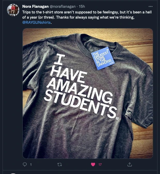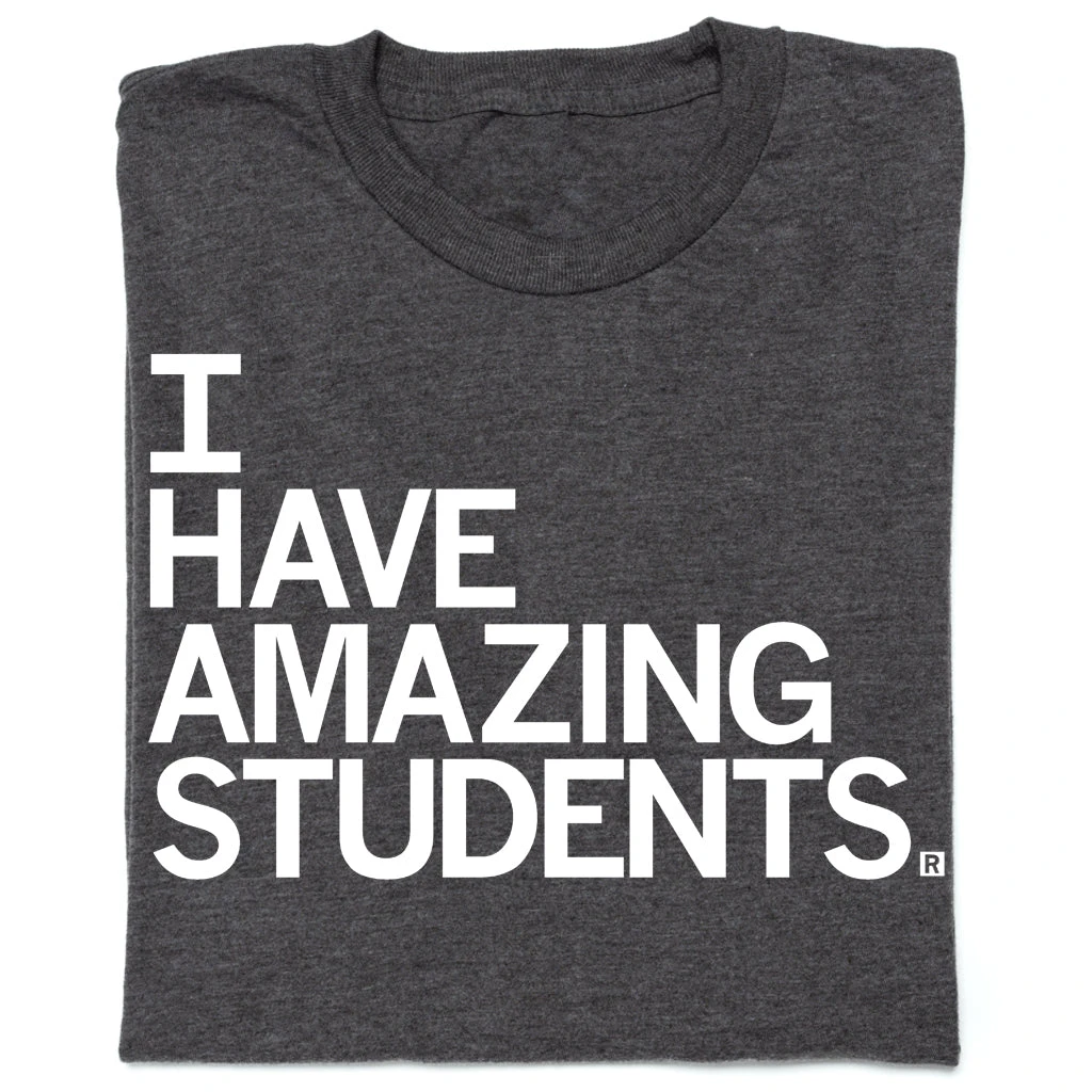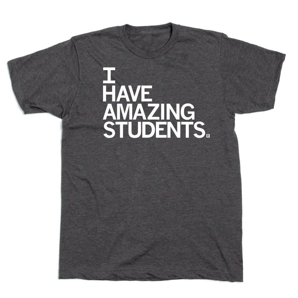 I Have Amazing Students. A Portion of All RAYGUN Sales Raise Money For Organizations That We Support. White Screen Print on Charcoal T-shirt (50% Combed Ringspun Cotton / 50% Polyester). Cut and sewn sweatshop free. Designed and printed by Union Labor at RAYGUN.