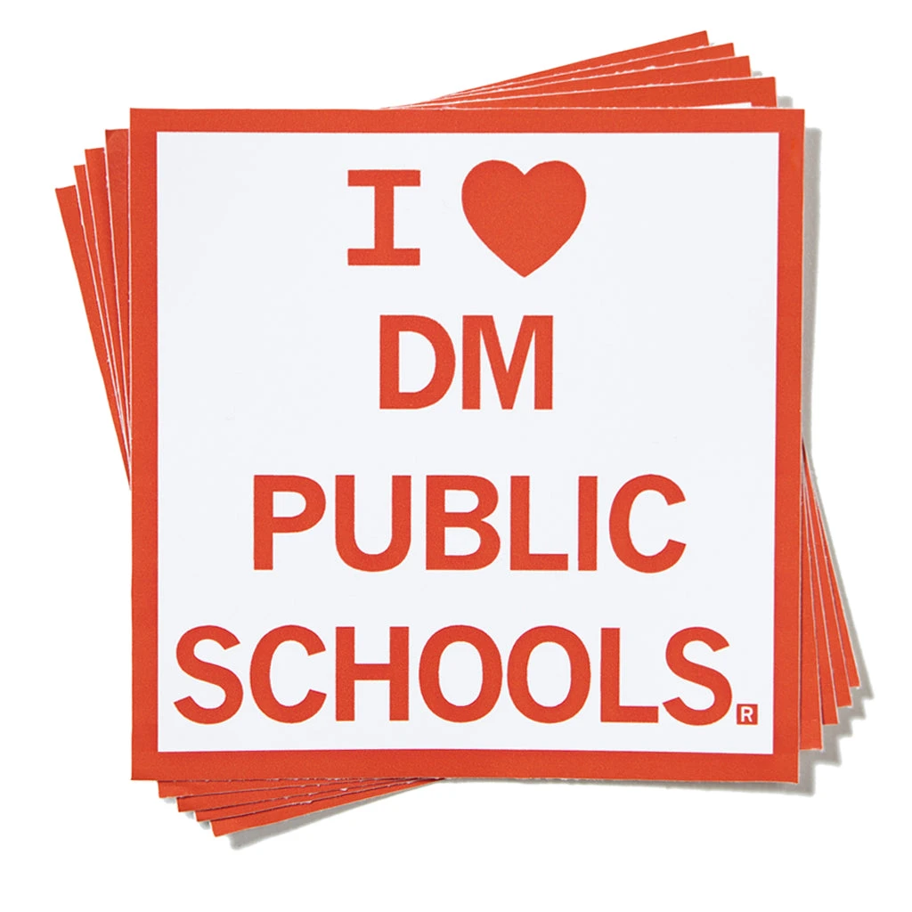 I Heart Des Moines Public Schools. RAYGUN has long supported public education, and sales of this shirt will help fund our continuing projects in the public school systems of Des Moines, Iowa City, Cedar Rapids, Chicago, and Kansas City areas. 4″ x 4″ Vinyl sticker. Designed by RAYGUN and printed by union Sinclair Graphics in Des Moines, IA.