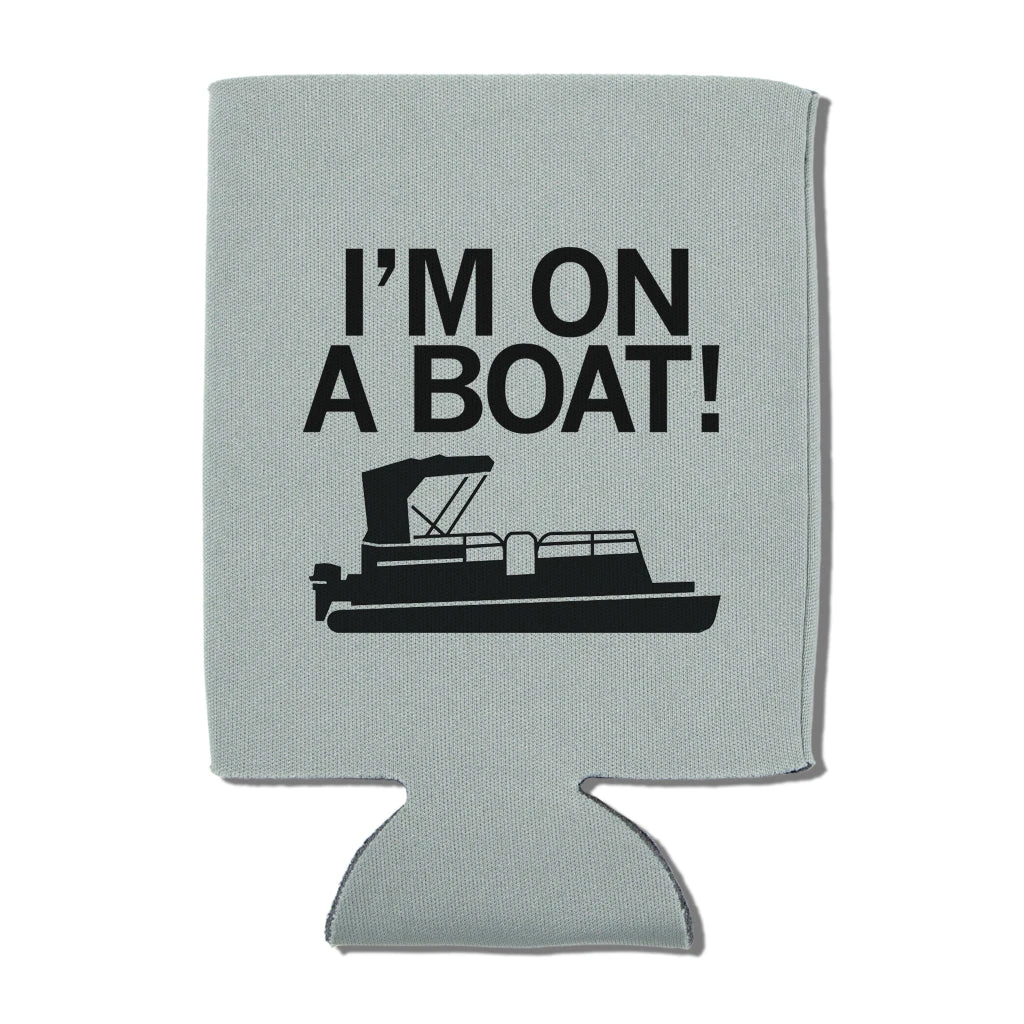 I’m on a Boat! Black plastisol ink print on Grey fade-resistant polyester covered scuba foam.Designed by RAYGUN. Imported and printed in the USA. Designed and printed by Union Labor at RAYGUN.
