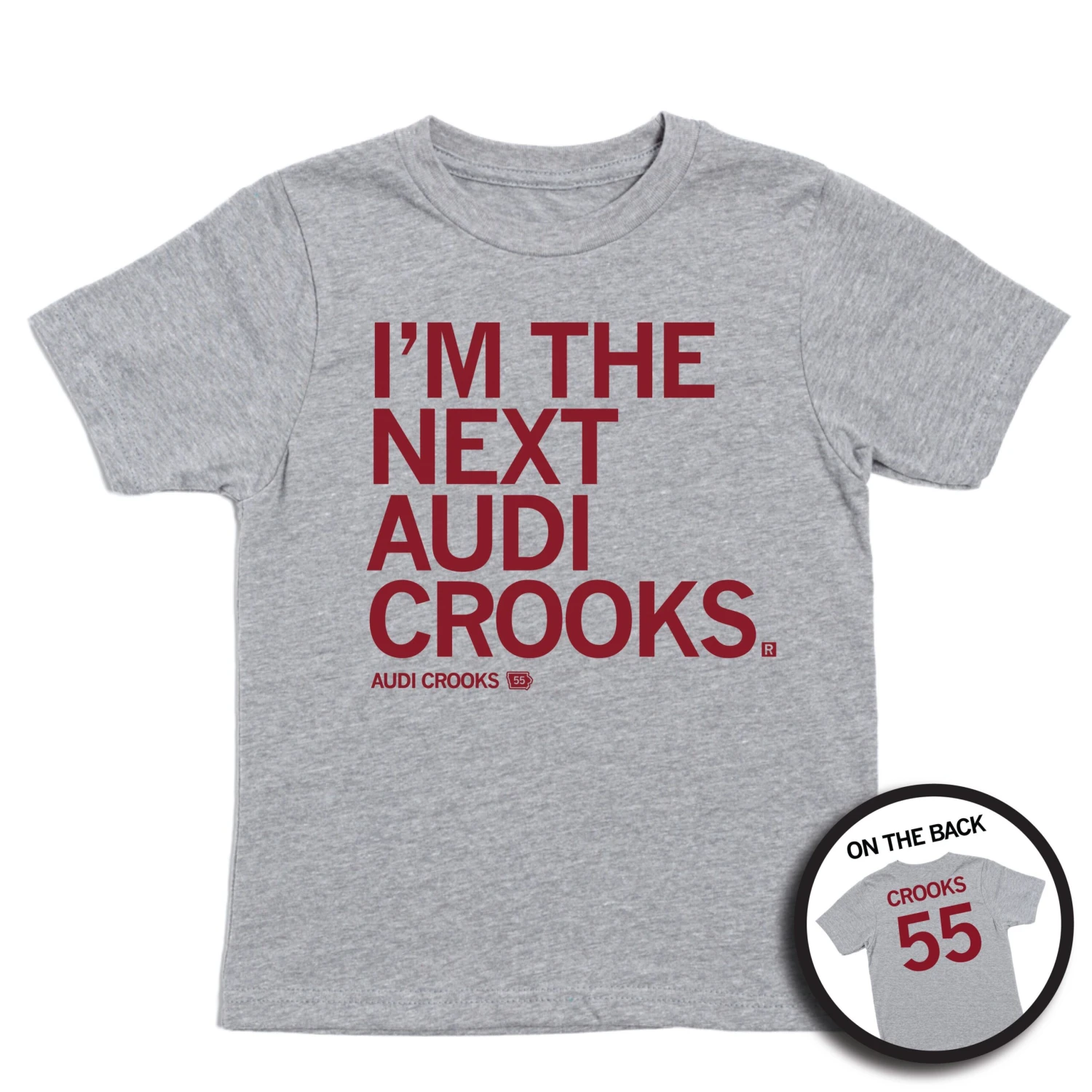 I’m the next Audi Crooks. Approved by Audi Crooks. A Portion of All RAYGUN Sales Raise Money For Organizations That We Support. Cardinal Red Screen Print on a Heather Grey Shirt (90% Cotton / 10% Polyester). Cut and sewn sweatshop free. Designed and printed by Union Labor at RAYGUN.