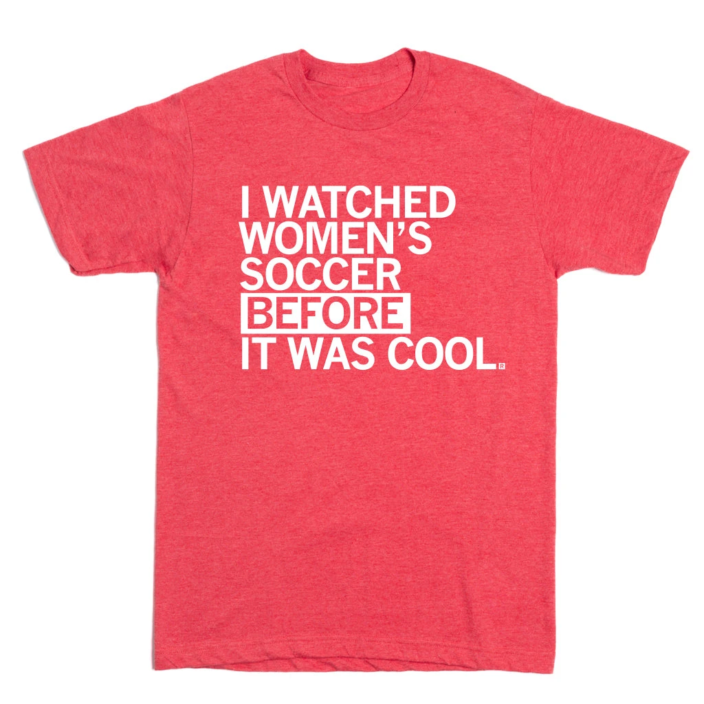 Chicago Red Stars: I Watched Women’s Soccer Before It Was Cool. A Portion of All RAYGUN Sales Raise Money For Organizations That We Support. White Screen Print on a Heather Red T-shirt (50% Combed Ringspun Cotton / 50% Polyester). Cut & sewn sweatshop free. Designed and Printed by Union Labor at RAYGUN.