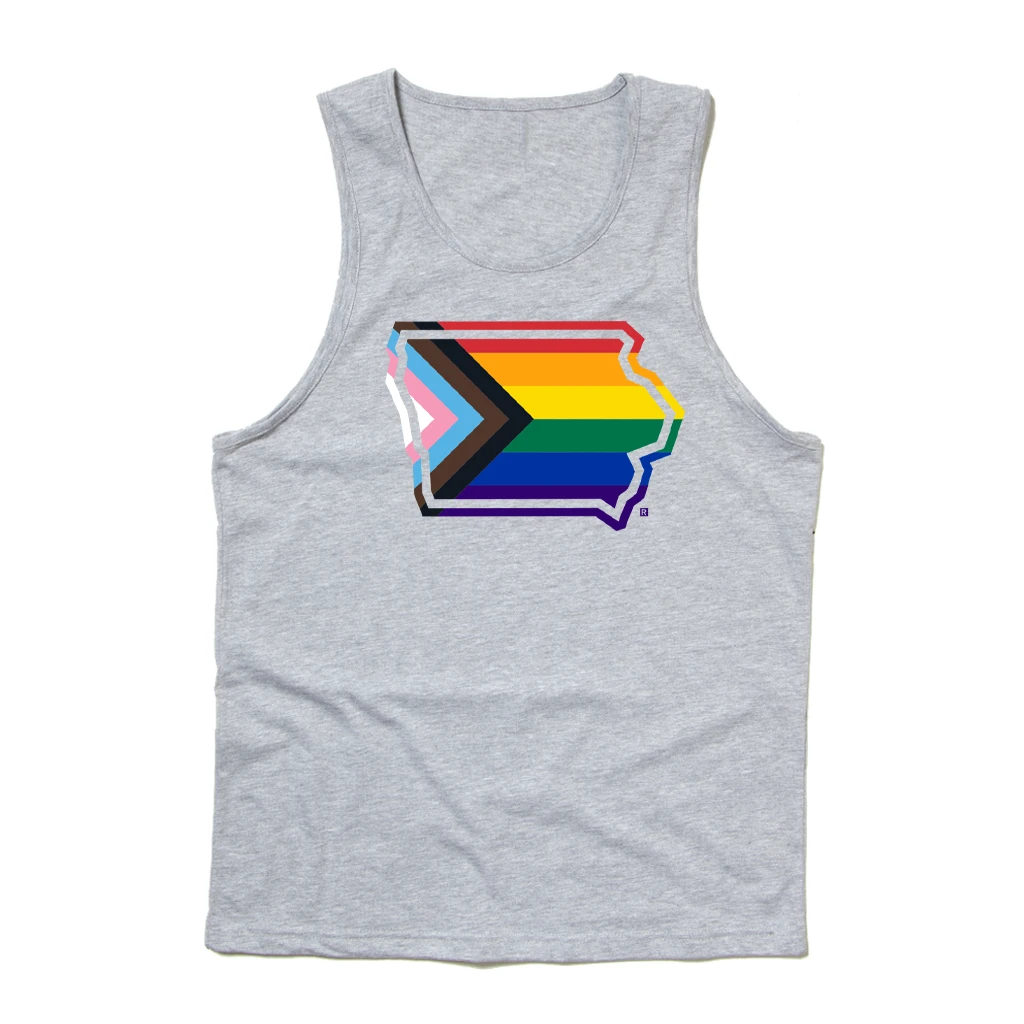 Iowa Outline Progress Pride Flag Tank Top