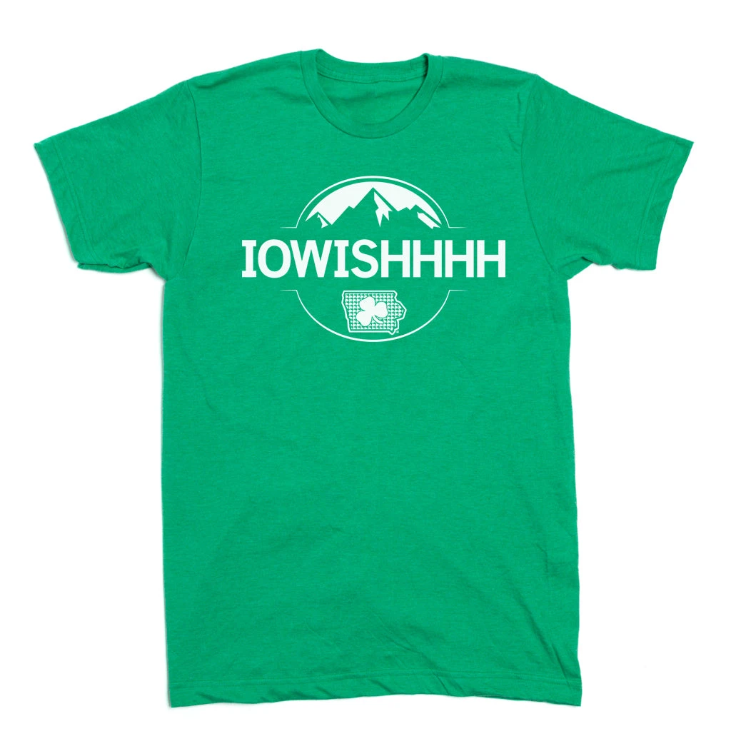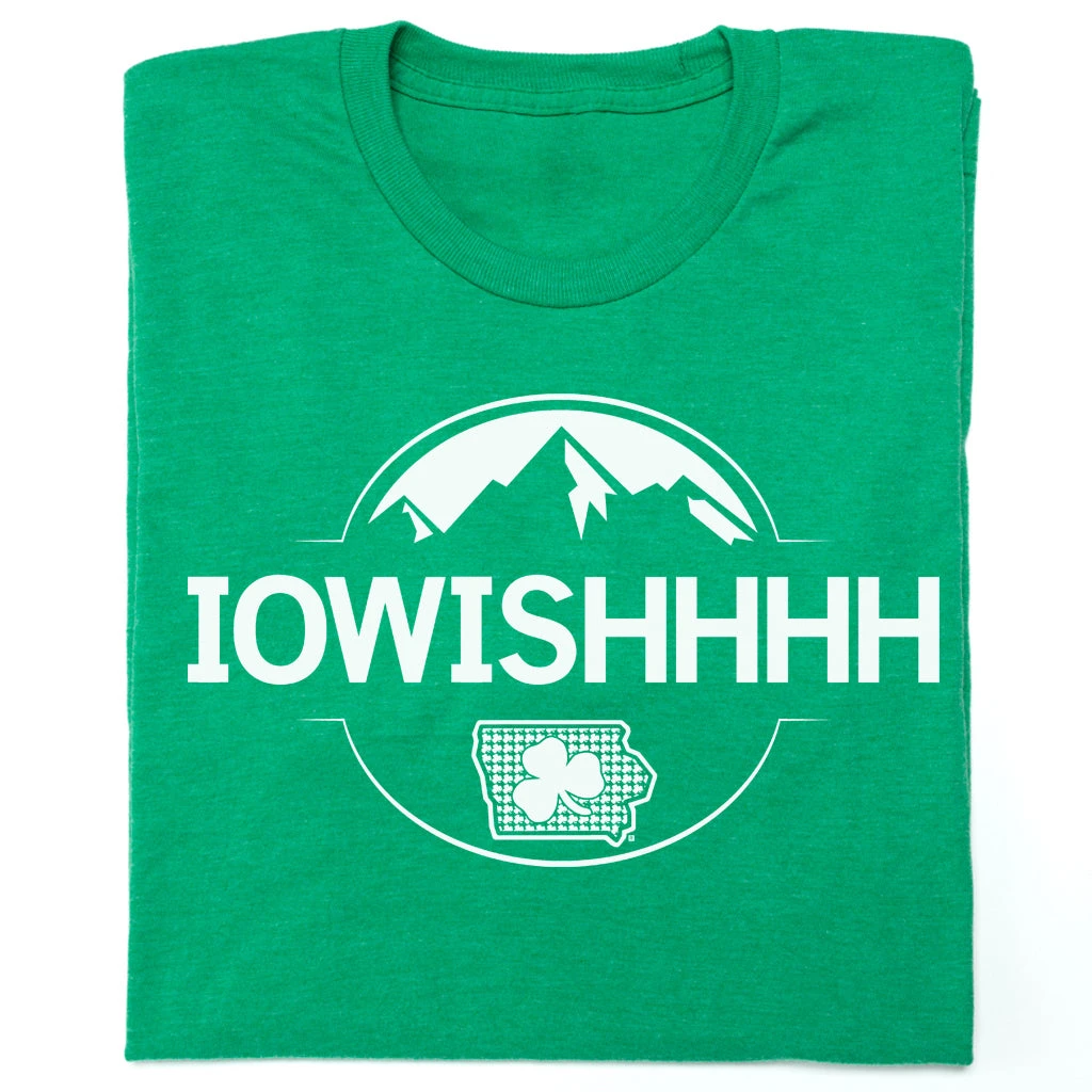 Iowish Busch Light. This Design Has Been Retired and is No Longer Available on Our Sales Floors But Can Be Ordered Here Online! Since All of Our Retired Designs Are Printed on Demand, Please Allow For a Couple Extra Days Before Shipping. A Portion of All Raygun Sales Raise Money For Organizations That We Support. White Screen Print on Heather Kelly Green T-shirt (50% Combed Ringspun Cotton / 50% Polyester). Cut and sewn sweatshop free. Designed and printed by Union Labor at RAYGUN.