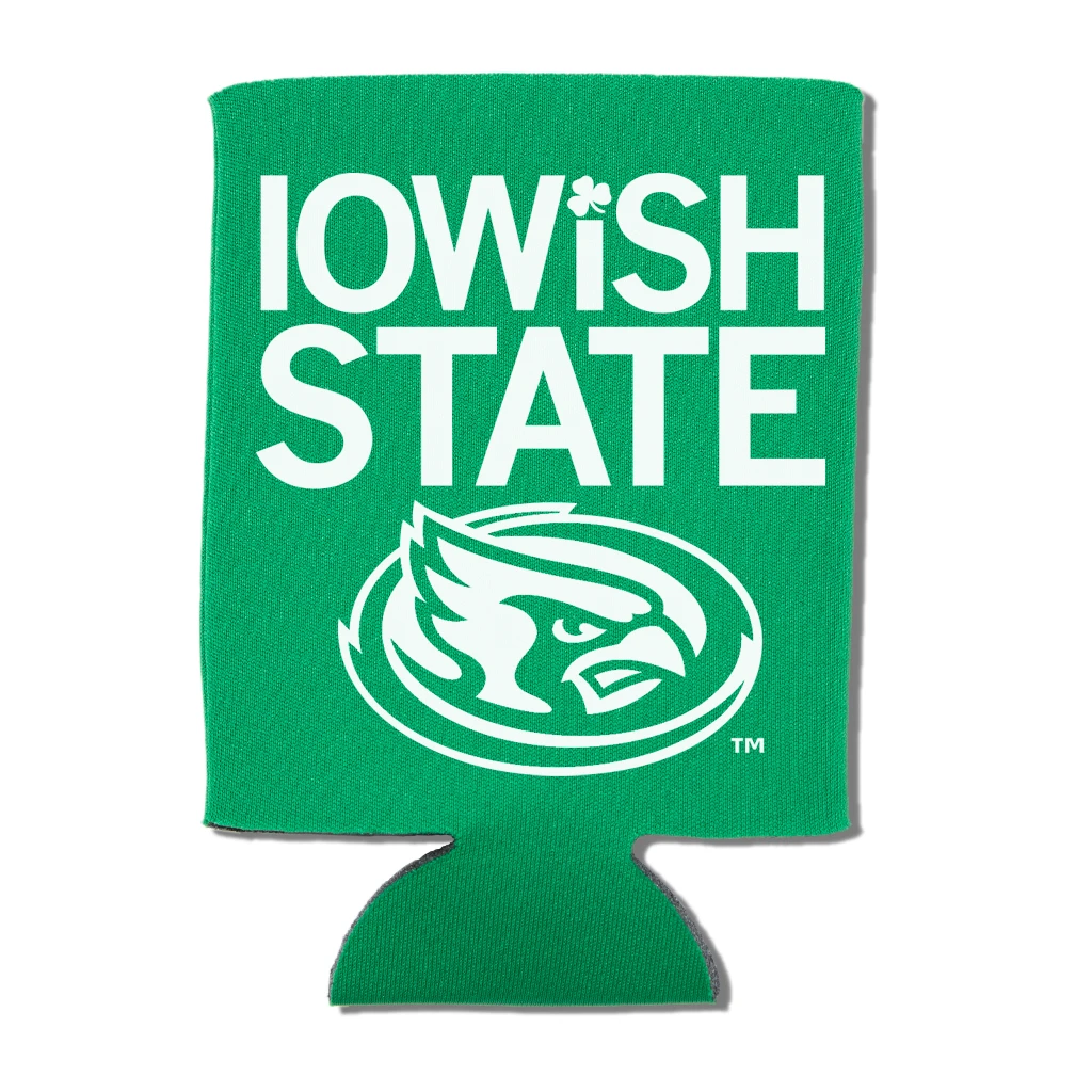 Iowish State. A Portion of All Raygun Sales Raise Money For Organizations That We Support. White plastisol ink print on Kelly Green fade-resistant polyester covered scuba foam. Designed by RAYGUN. Imported and printed in the USA.