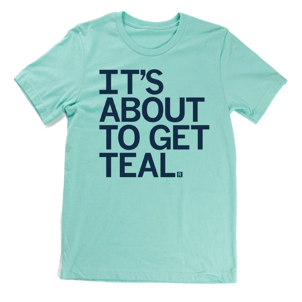It’s About To Get Teal. A Portion of All RAYGUN Sales Raise Money For Organizations That We Support. Dark Navy Screen Print on a Heather Mint T-shirt (52% Combed Ringspun Cotton / 48% Polyester). Cut & sewn sweatshop free. Designed and Printed by Union Labor at RAYGUN.