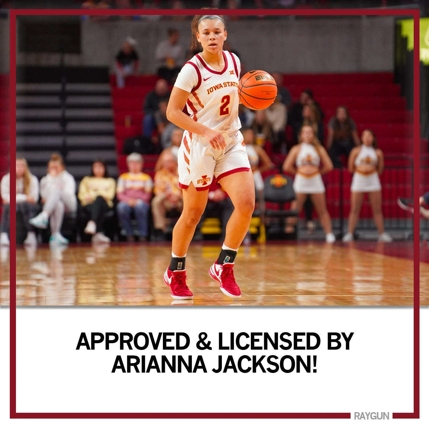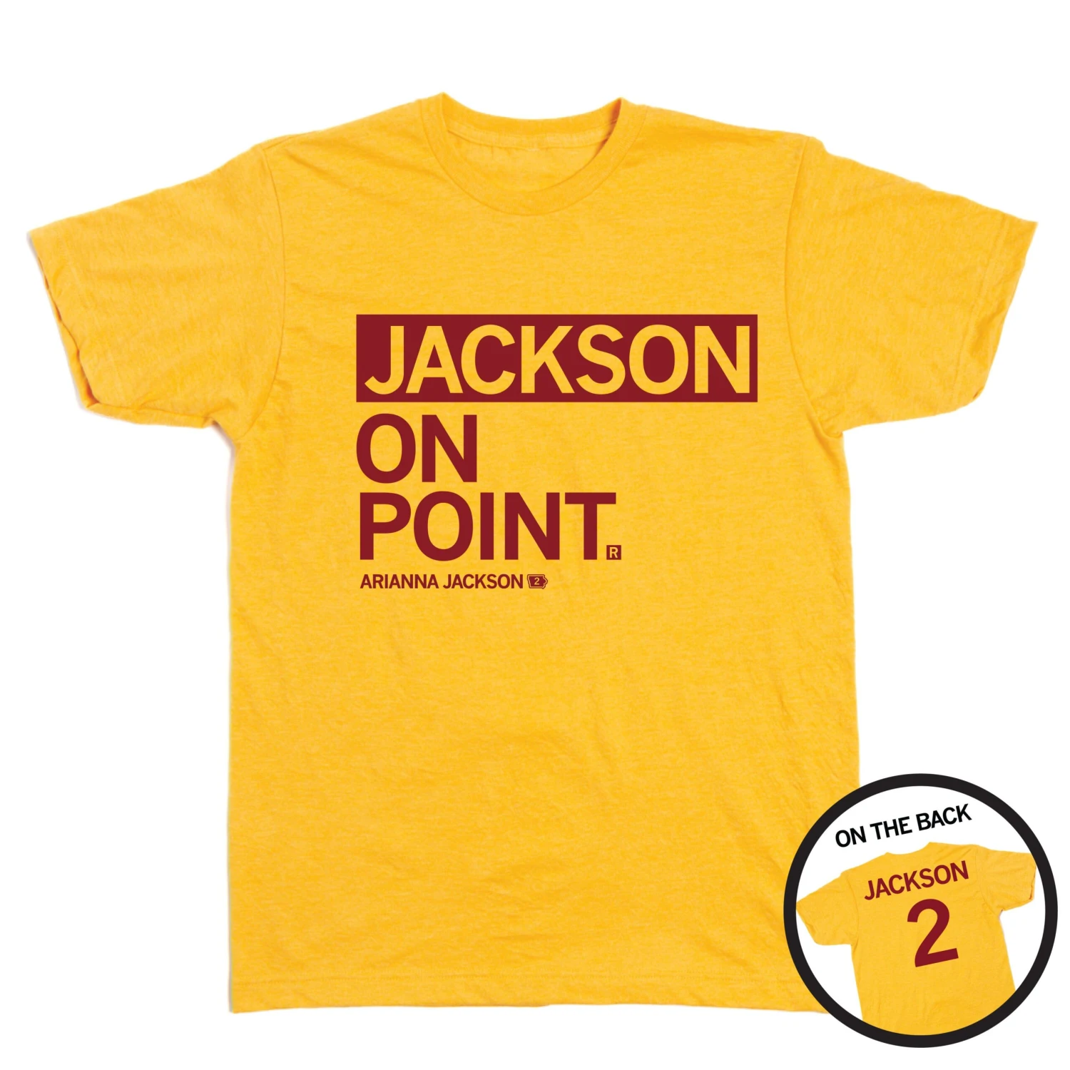 Jackson on Point. Officially licensed with Arianna Jackson. This shirt has been approved by Arianna Jackson. A Portion of All RAYGUN Sales Raise Money For Organizations That We Support. Cardinal Screen Print on a Heather Mellow Yellow T-shirt (50% Combed Ringspun Cotton / 50% Polyester). Cut & sewn sweatshop free. Designed and Printed by Union Labor at RAYGUN.
