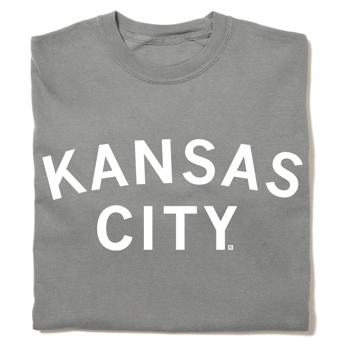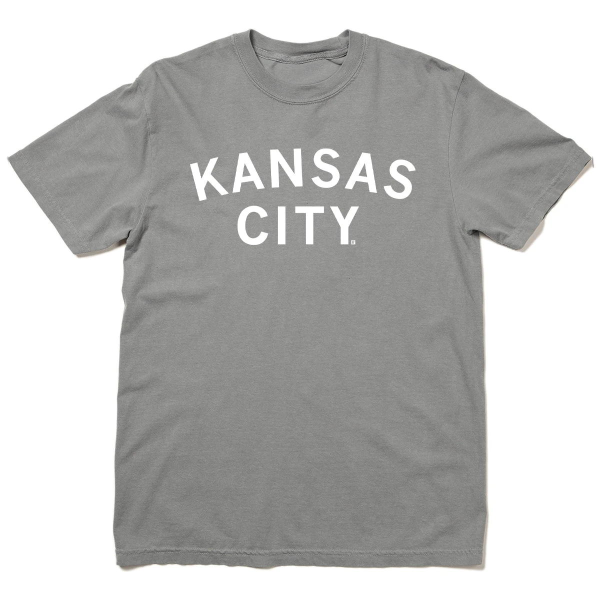 Kansas City, Missouri & Kansas. A Portion of All RAYGUN Sales Raise Money For Organizations That We Support. White Screen Print on a Garment-Dyed Heavyweight Grey T-shirt (100% Combed Ringspun Cotton Heavyweight). Cut & sewn sweatshop free. Designed and Printed by Union Labor at RAYGUN.