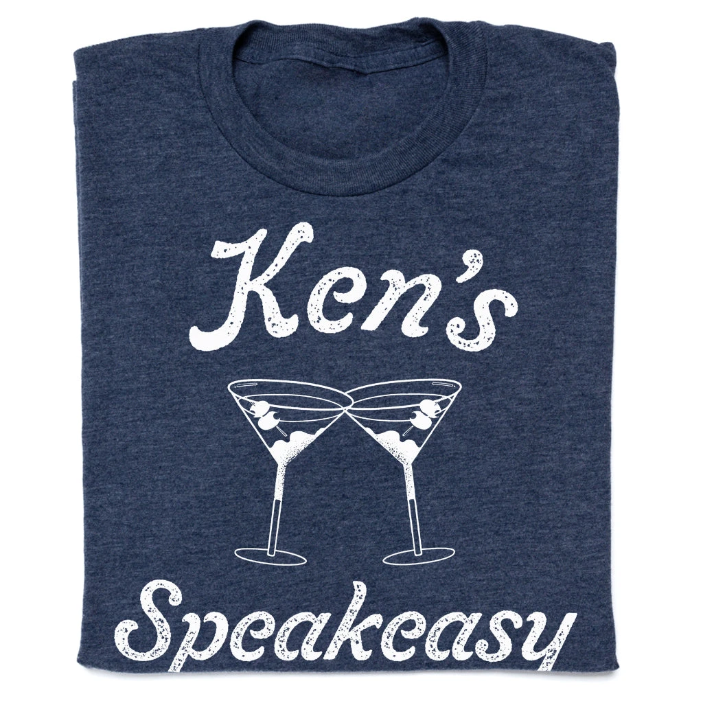 Ken’s Speakeasy Des Moines, Iowa. A Portion of All RAYGUN Sales Raise Money For Organizations That We Support. White Screen Print on a Heather Denim T-shirt (50% Combed Ringspun Cotton / 50% Polyester). Cut & sewn sweatshop free. Designed and Printed by Union Labor at RAYGUN.