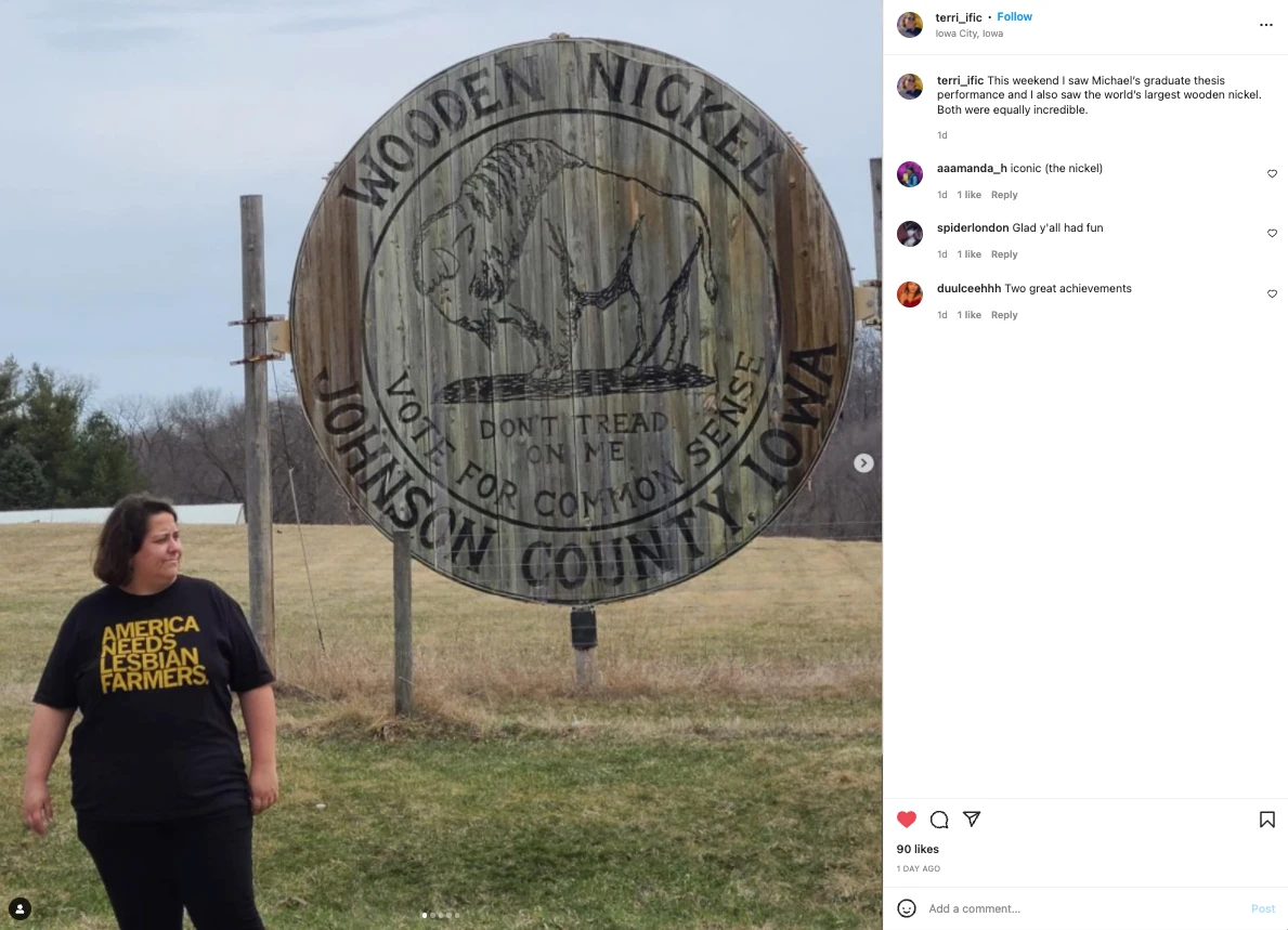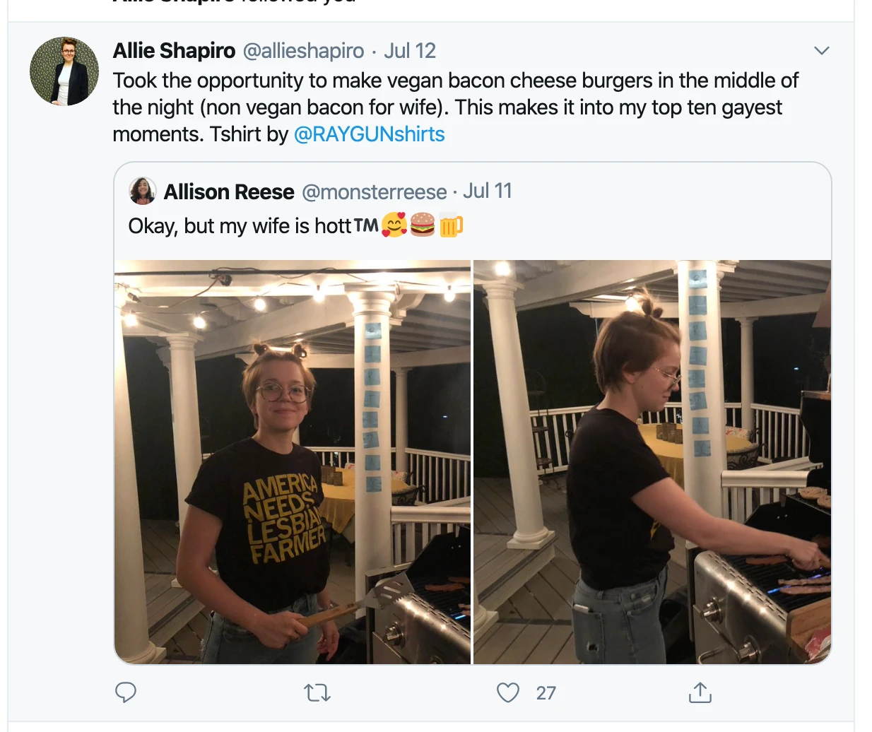 America Needs Lesbian Farmers! A Portion of All Raygun Sales Raise Money For Organizations That We Support. Gold Screen Print on a Black T-shirt (100% Combed Ringspun Cotton). Cut and sewn sweatshop free. Designed and printed by Union Labor at RAYGUN.
