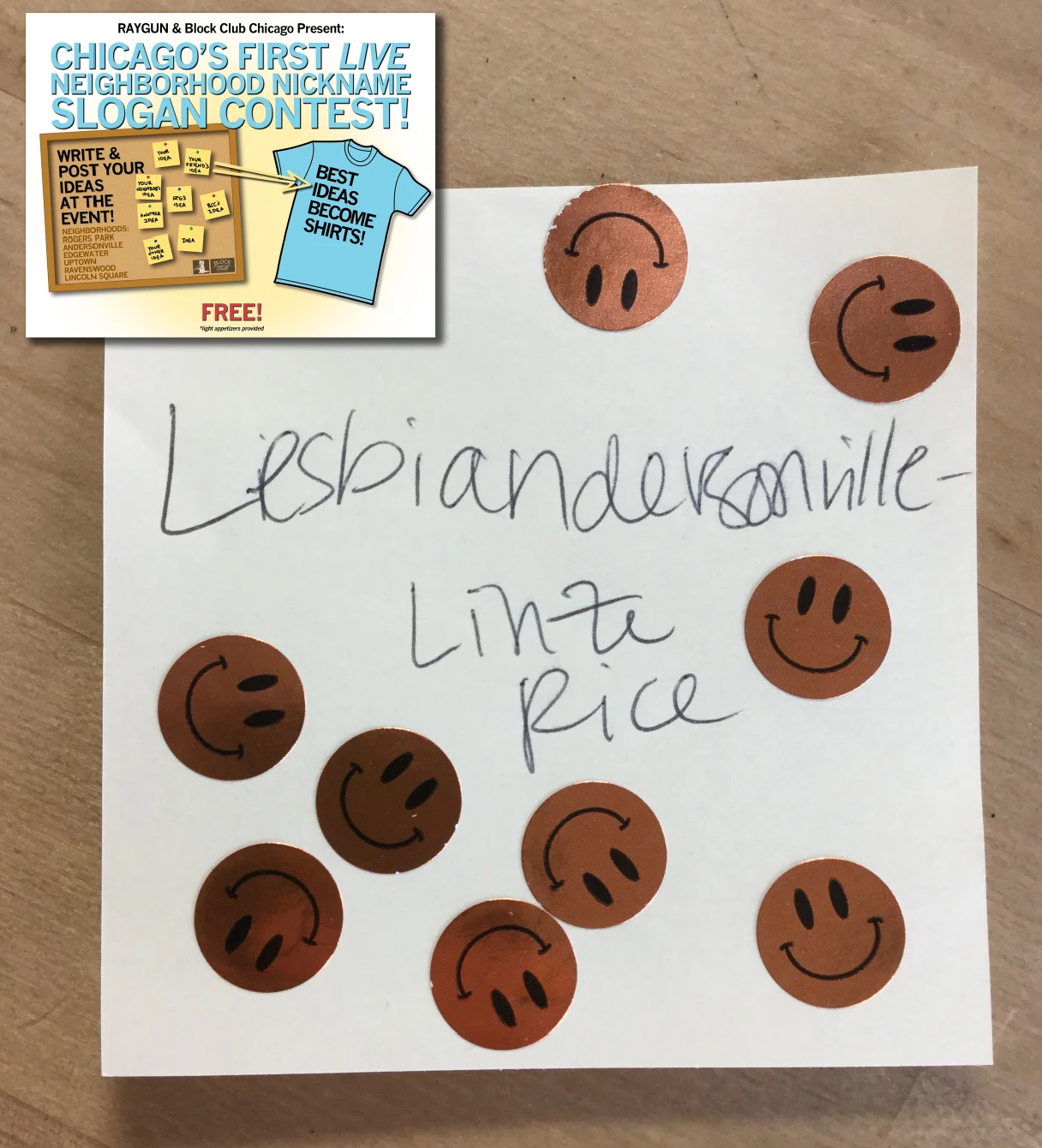 Lesbian. Andersonville. Lesbiandersonville. This Design Has Been Retired and is No Longer Available on Our Sales Floors But Can Be Ordered Here Online! Since All of Our Retired Designs Are Printed on Demand, Please Allow For a Couple Extra Days Before Shipping. A Portion of All Raygun Sales Raise Money For Organizations That We Support. Mono Blue Screen Print on a Gold T-Shirt (100% Combed Ringspun Cotton). Cut and sewn sweatshop free. Designed and printed by Union Labor at RAYGUN.