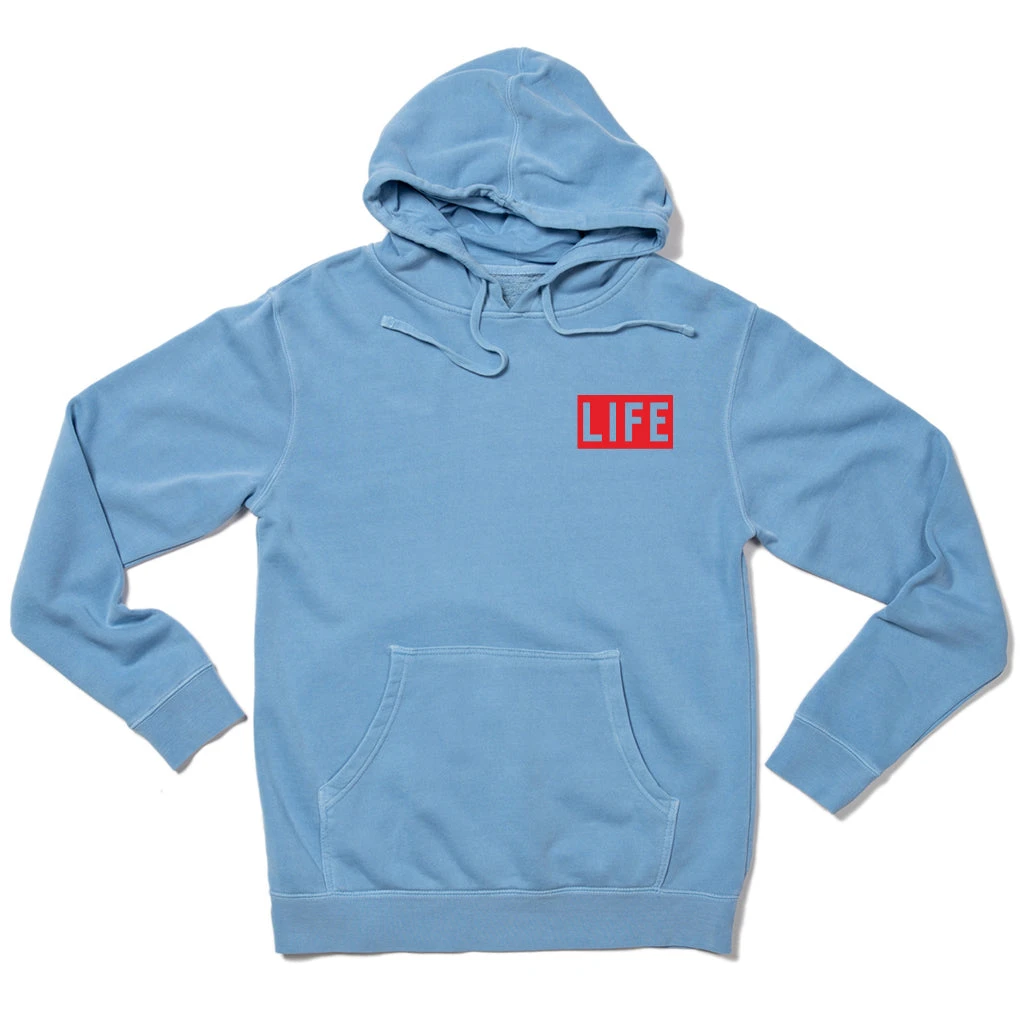 Cowgirl. This product is part of our exclusive collaboration with the LIFE Magazine photo library. A Portion of All RAYGUN Sales Raise Money For Organizations That We Support. Brite Red & Black Screen Print on a Pigment Light Blue Pullover Hoodie (80% Combed and Ringspun Cotton / 20% Polyester). Cut and sewn sweatshop free. Designed and printed by Union Labor at RAYGUN.