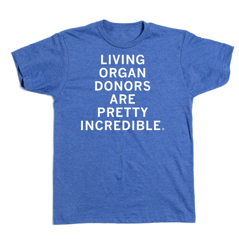 Living organ donors are pretty incredible. Inspired by a friend of ours who donated a kidney for their sister, encouraging everyone to look into organ donation! A Portion of All RAYGUN Sales Raise Money For Organizations That We Support. White Screen Print on a Heather Royal T-shirt (50% Combed Ringspun Cotton / 50% Polyester). Cut & sewn sweatshop free. Designed and Printed by Union Labor at RAYGUN.