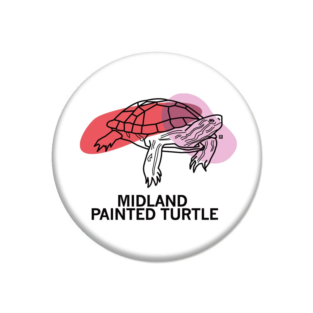 The Midland Painted Turtle. A Portion of All RAYGUN Sales Raise Money For Organizations That We Support. 2.25″ Round Metal Button. Designed by RAYGUN and Made by Badge Bomb LLC.
