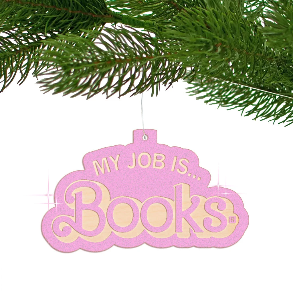 My Job Is Books Ornament. A Portion of All RAYGUN Sales Raise Money For Organizations That We Support. Laser Etch on Baltic Birch wood ornament. 4.5″w x 2.75″h x .125″ thick. Elastic hanger or metal hook included. Designed and manufactured by union labor at RAYGUN.