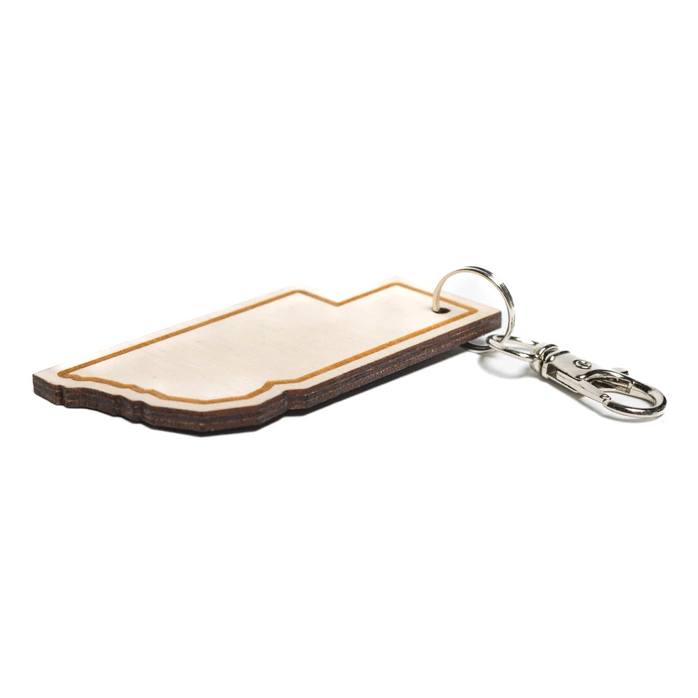 Nebraska Outline Wood Keychain. A Portion of All RAYGUN Sales Raise Money For Organizations That We Support. Laser Etch on Baltic Birch wood keychain. 2.5″ x 1.25″ x .125″ thick. Designed and manufactured by union labor at RAYGUN.