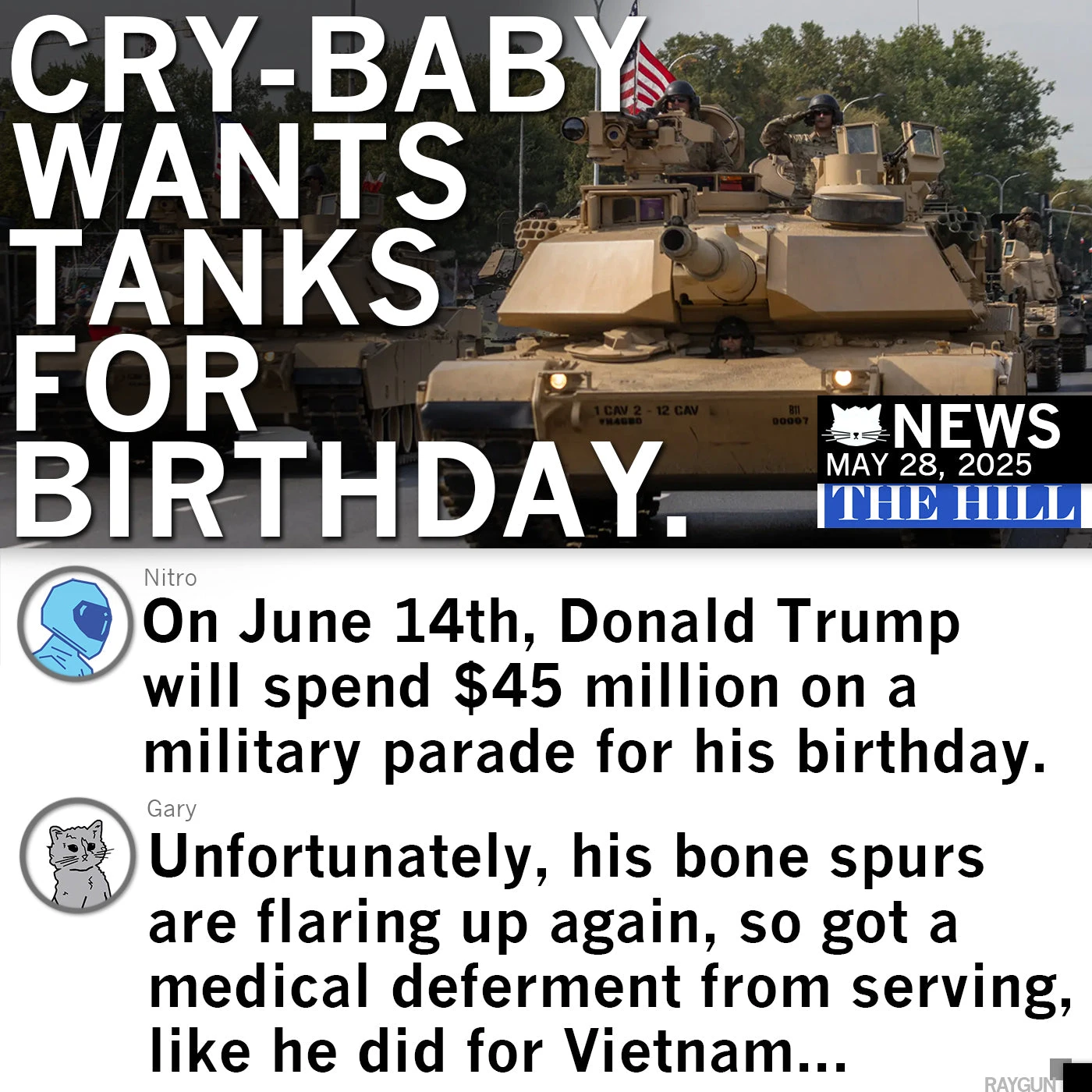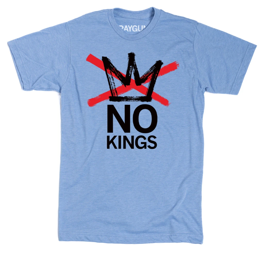 “In America, we don’t do kings.” Turn out on June 14th and every day. A Portion of Sales Raise Money For the ACLU, Indivisible and other organizations that we support. Brite Red & Black Screen Print on an Athletic Blue T-shirt (65% Polyester / 35% Combed Ringspun Cotton). Cut & sewn sweatshop free. Designed and Printed by Union Labor at RAYGUN.