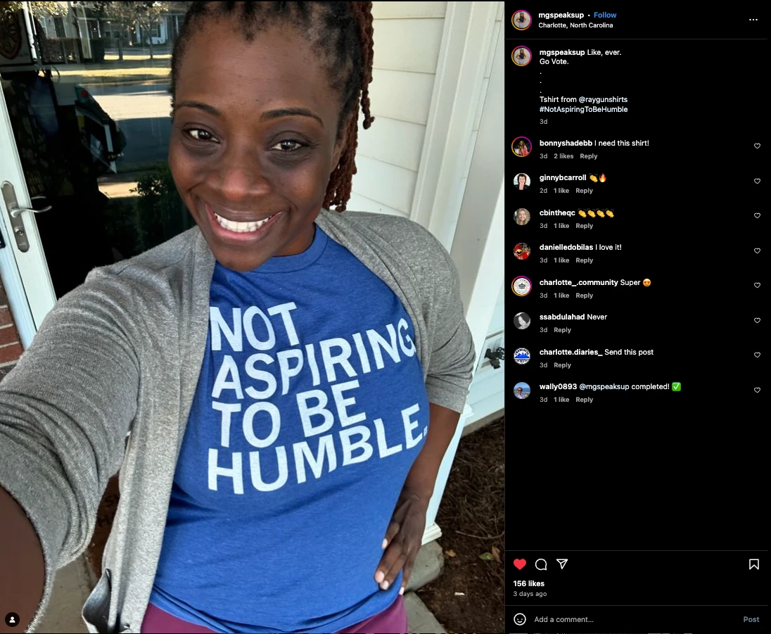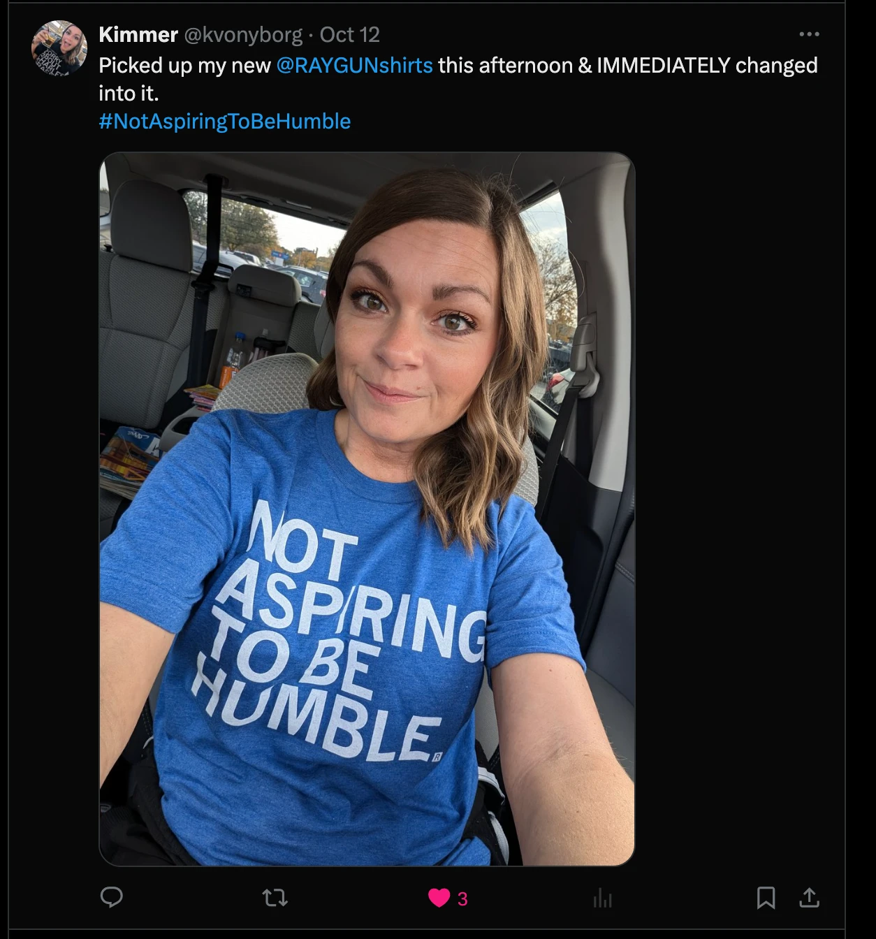 Kamala is Not Aspiring to be Humble. A Portion of All RAYGUN Sales Raise Money For Organizations That We Support. White Screen Print on a Heather Royal T-shirt (50% Combed Ringspun Cotton / 50% Polyester). Cut & sewn sweatshop free. Designed and Printed by Union Labor at RAYGUN.