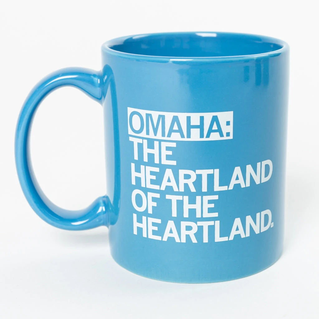 Omaha: The Heartland of the Heartland. 11 oz Mug. Fade resistant and dishwasher safe. Designed by RAYGUN and printed by PyroGraphics in Des Moines, IA