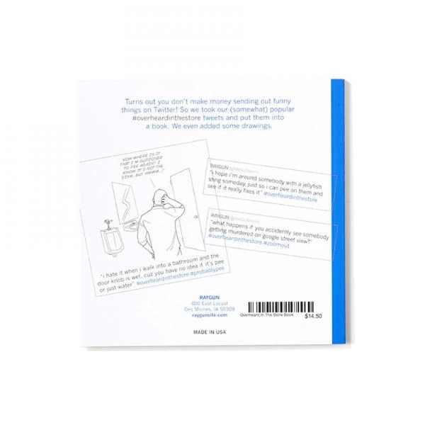 Turns out you don’t make money sending out funny things on Twitter! So we took our (somewhat) popular #overheardinthestore tweets and put them into a book. We even added some drawings.